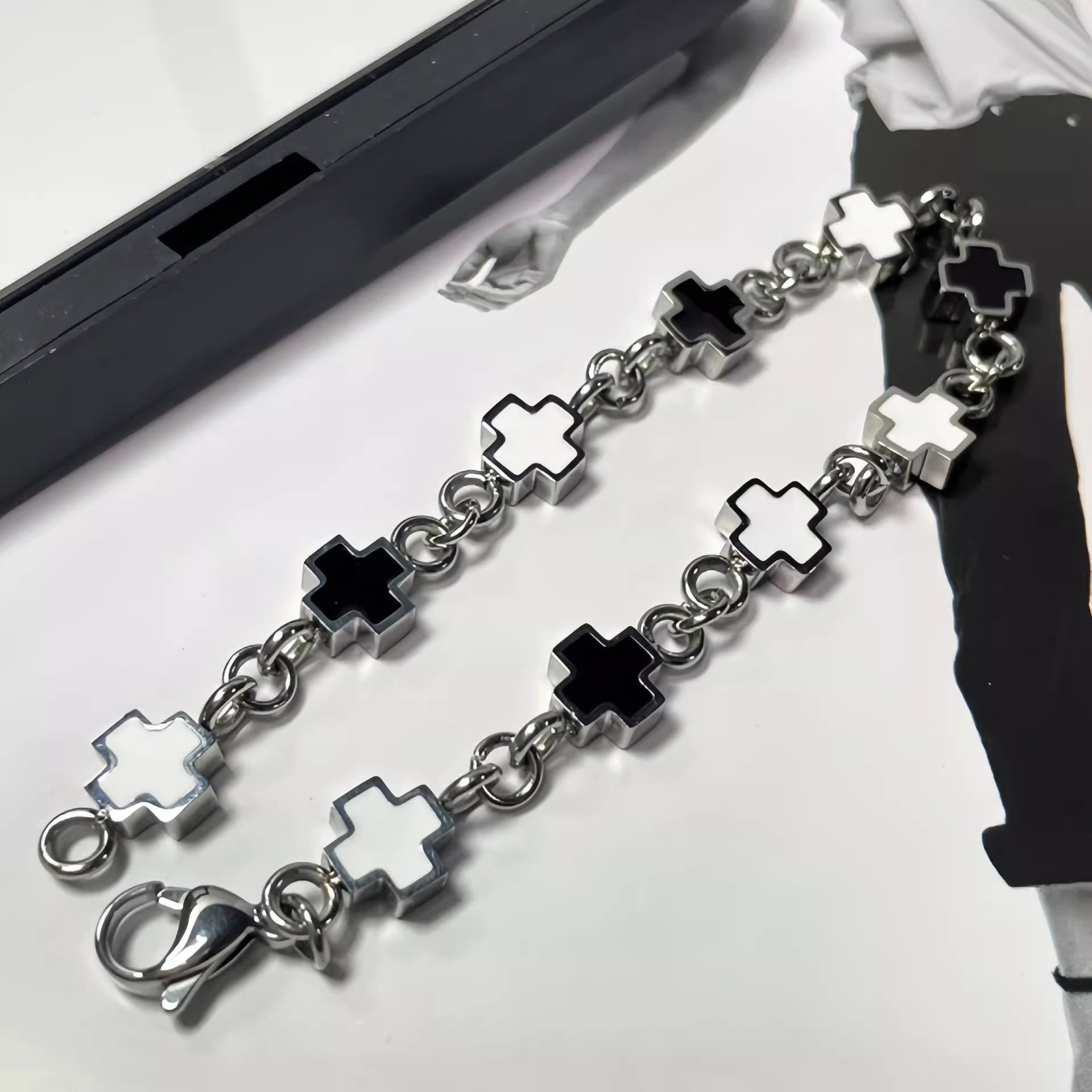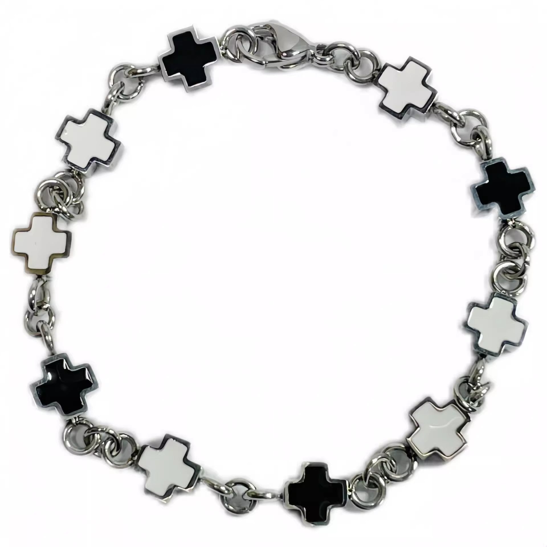Planderful Jewelry Cross Bracelet In Steel Black And White Splice For Women And Men High End Fashion