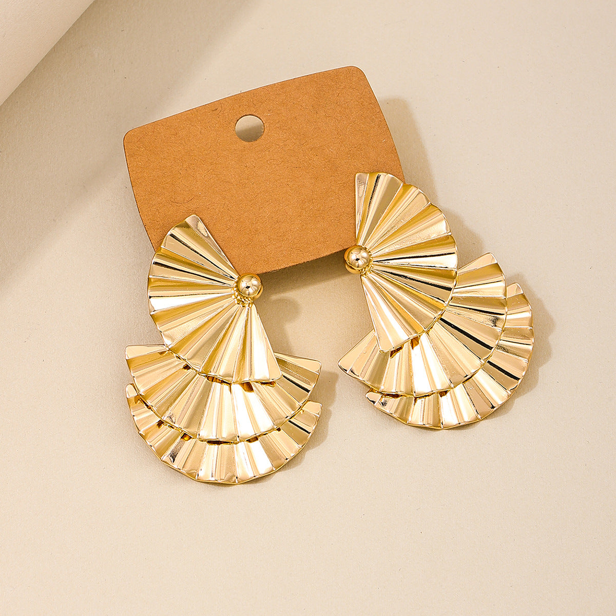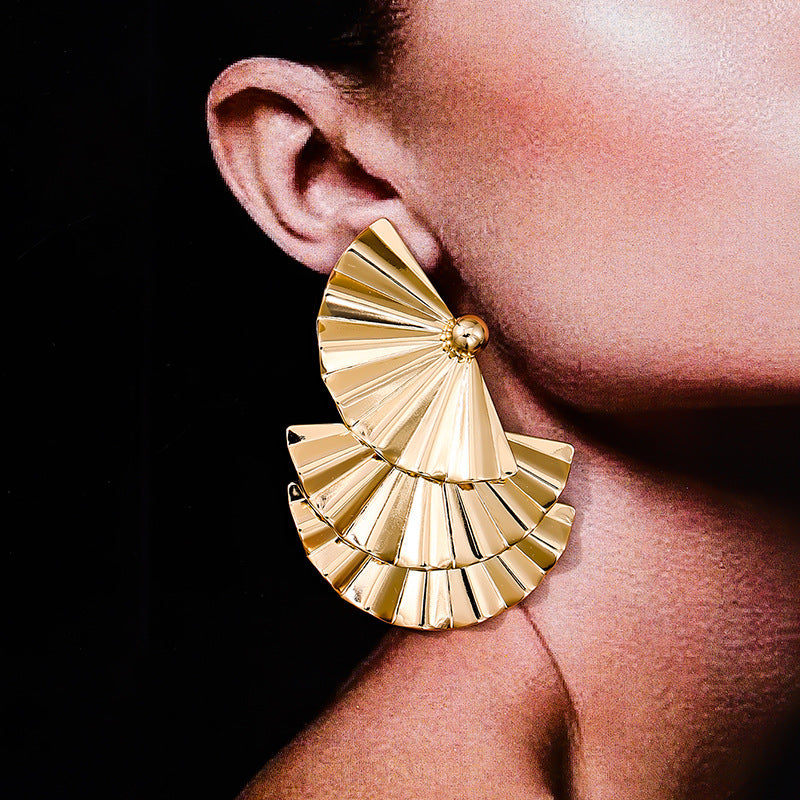Exquisite Fan-Shaped Earrings with a Bold European-Inspired Design