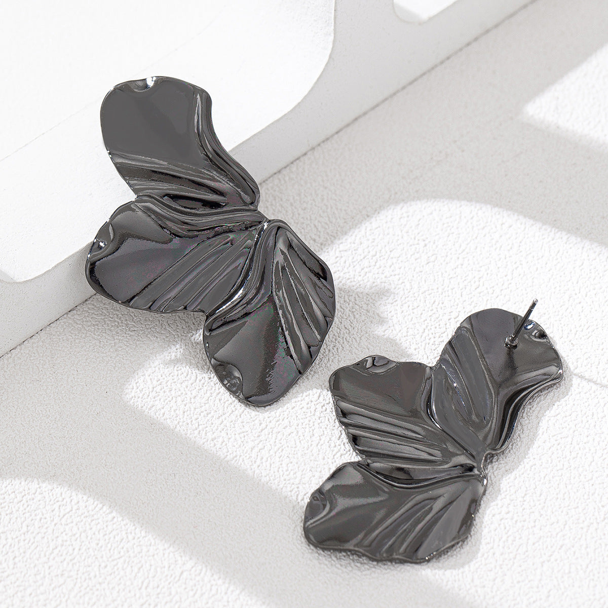 European and American Ins Pleated Flower Glossy Earrings by Planderful delivers a touch of luxury and personality for fashion-forward individuals seeking unique accessories.