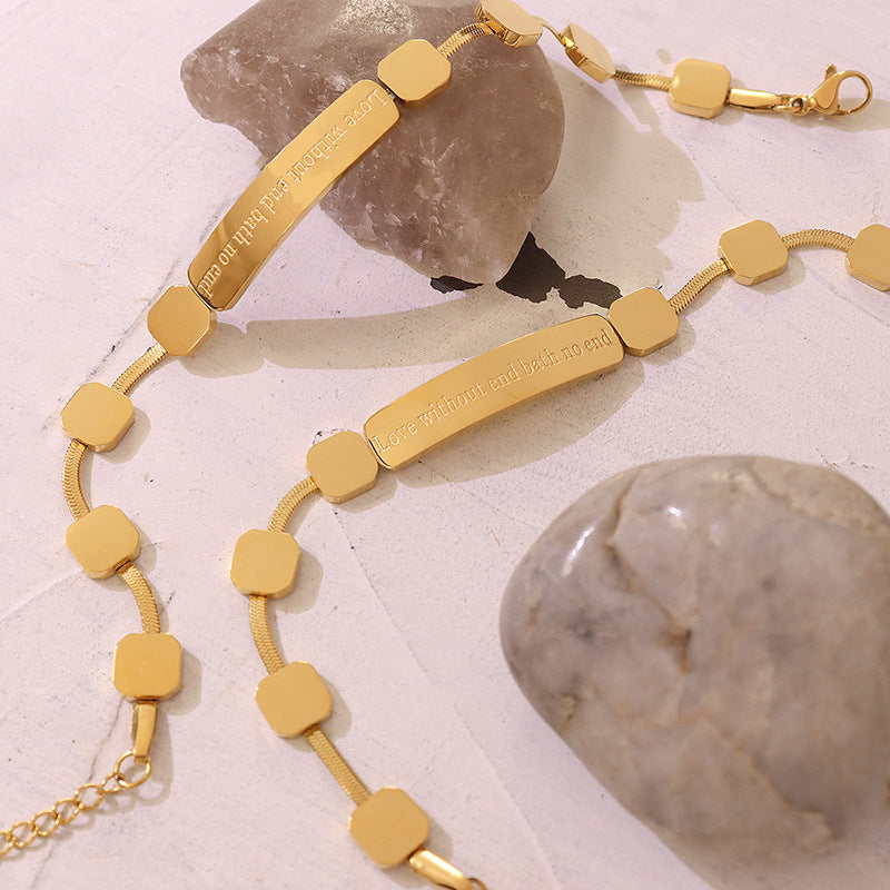 European and American Inspired English Letter Bracelet in 18K Gold Plated Titanium Steel