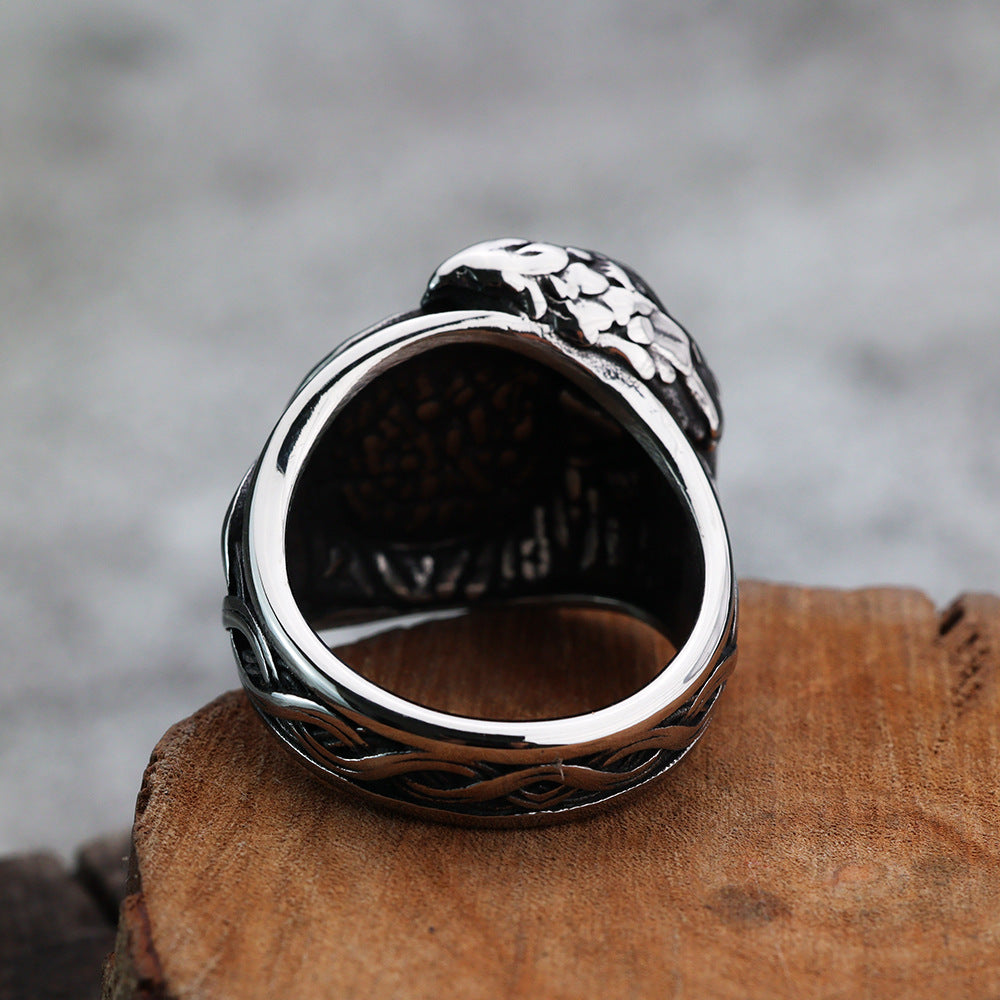 Elevate your style with the European and American jewelry wholesale men's titanium steel ring Viking triangle logo personality crow edge pattern stainless steel ring for men. This exquisite piece from our Norse Legacy collection combines durable materials with a striking design that speaks to the heart of Viking heritage.