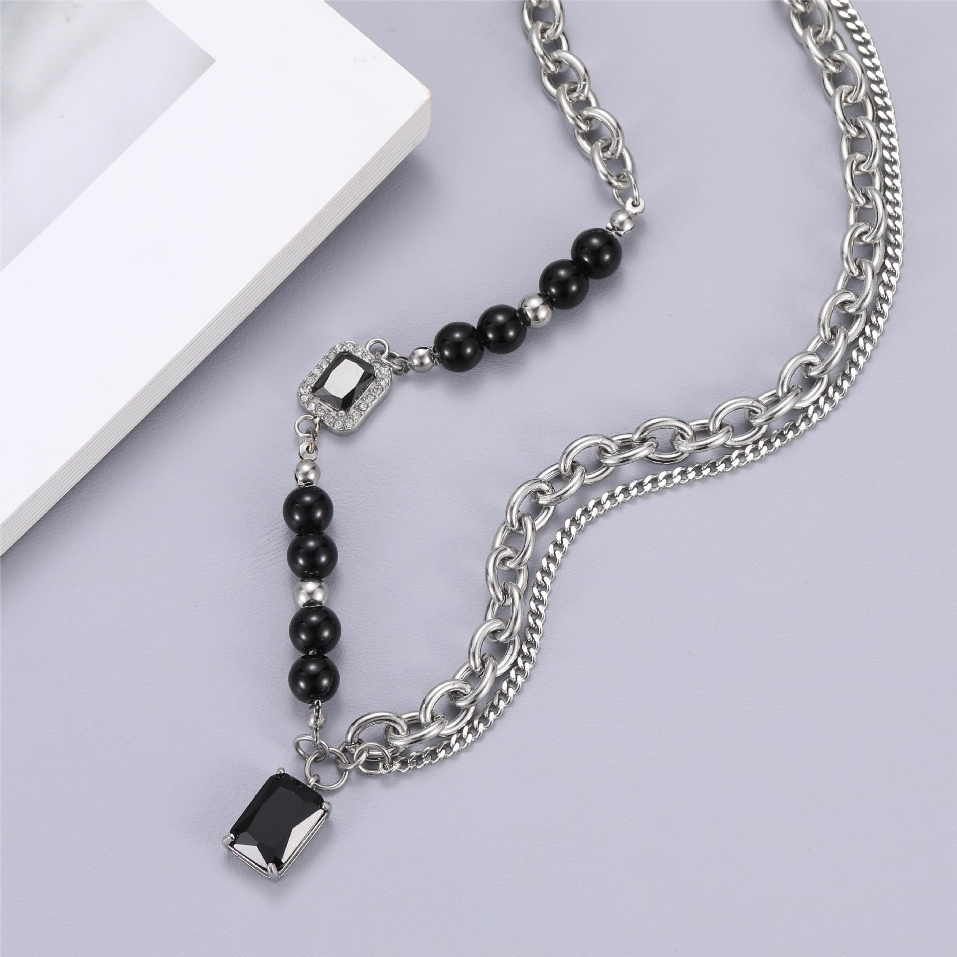 • Design: European and American niche-inspired, double-layer silhouette with black bead elements and subtle gem accents; unisex styling for both men and women