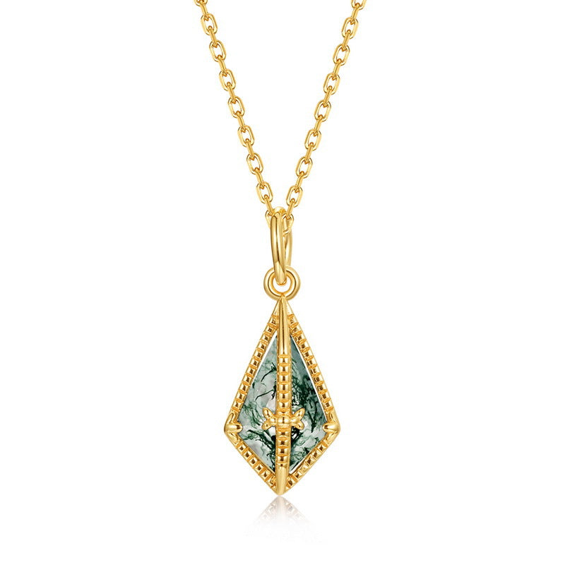 This necklace is a versatile statement of understated luxury. The green moss agate provides a natural pop of color and organic texture, while the geometric silhouette keeps the look modern and wearable from day to night. The S925 sterling silver base with a gold-plated finish offers lasting durability and a luxe feel that pairs beautifully with other jewelry. Ideal for gifting, it speaks to nature lovers and minimalists alike, elevating outfits with a calm, botanical glow and a sense of refined confidence.