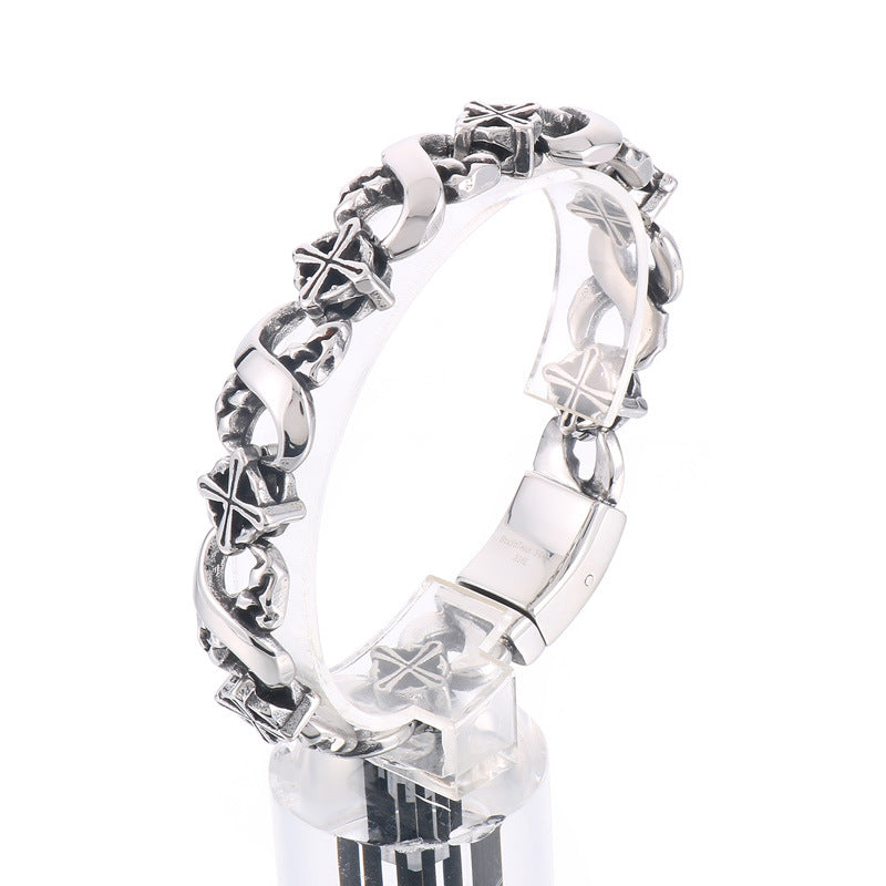 Introducing a unique blend of modern design and timeless elegance, our European and American personality design infinite 8-character jewelry is the perfect accessory for the contemporary man. This punk retro old titanium steel hollow cross men's bracelet redefines fashion, making a bold statement wherever you go.