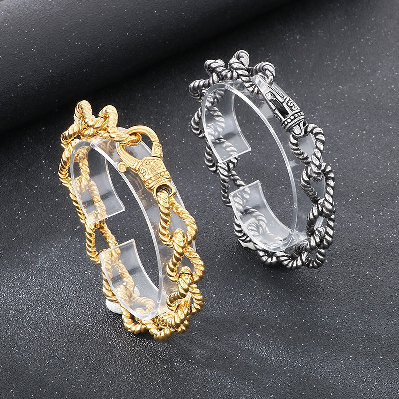 Planderful Mens Titanium Twist Chain Bracelet Retro Punk