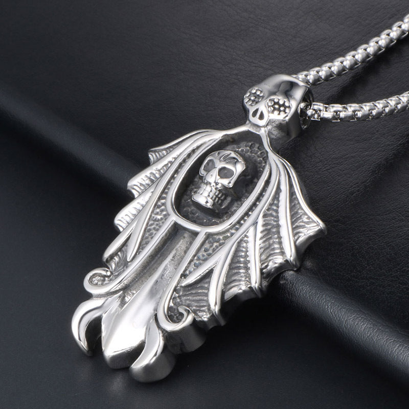Retro Skull Cape Sword Pendant Necklace for Men - Punk Titanium Steel Fashion Accessory