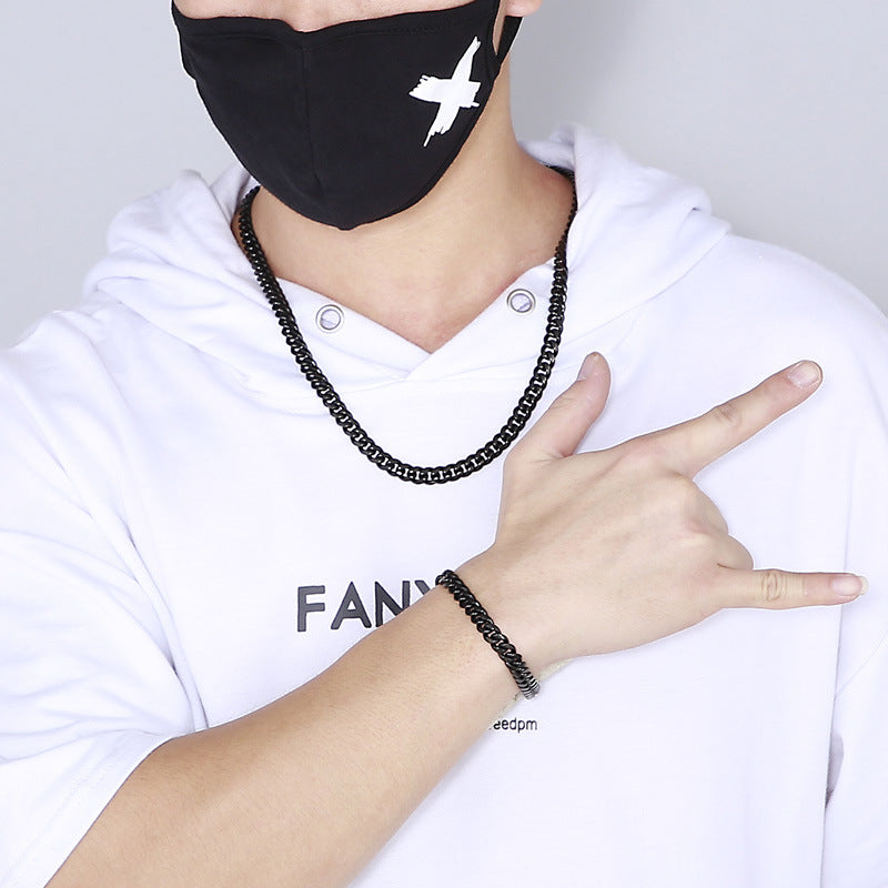 Trendy Titanium Steel Men's Cuban Bracelets and Necklaces - Hip-hop Jewelry Inspired by European and American Rock Culture