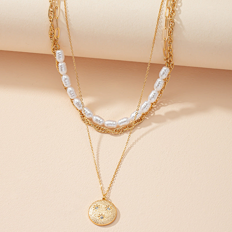 Elegant 3-Layer Freshwater Pearl Pendant Necklace with Tag Detail