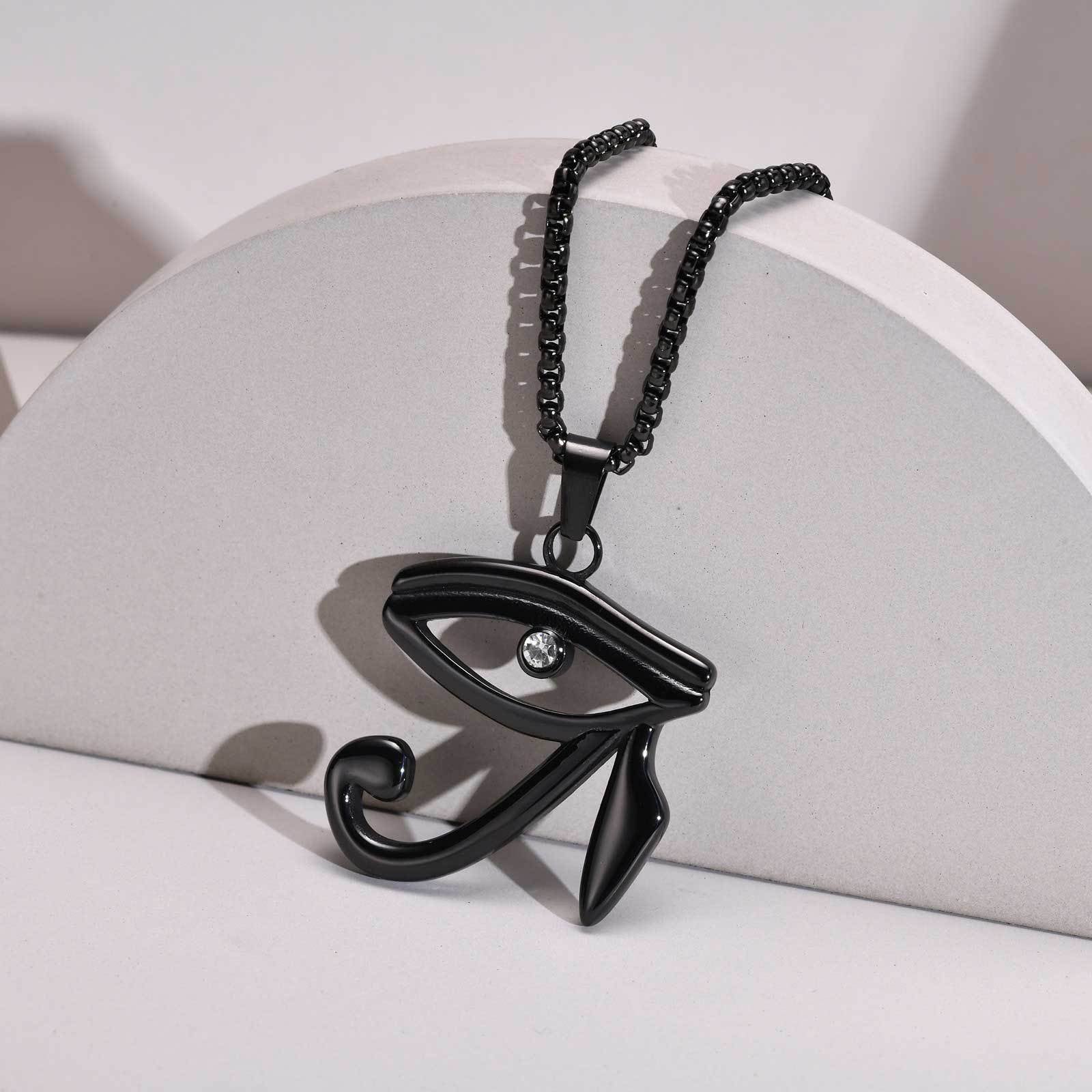 European and American Stainless Steel Zircon Eye of Horus Pendant Black Men's Necklace Jewelry for Men