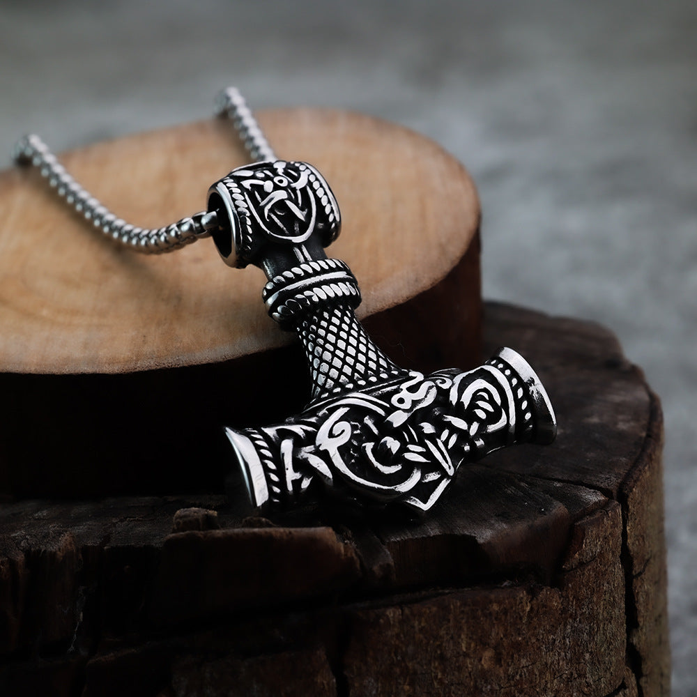 Crafted from durable titanium steel, this necklace is designed for those who appreciate both style and strength. Its intricate Celtic knot design symbolizes unity and eternity, while the iconic Thor's hammer pendant represents protection and power.