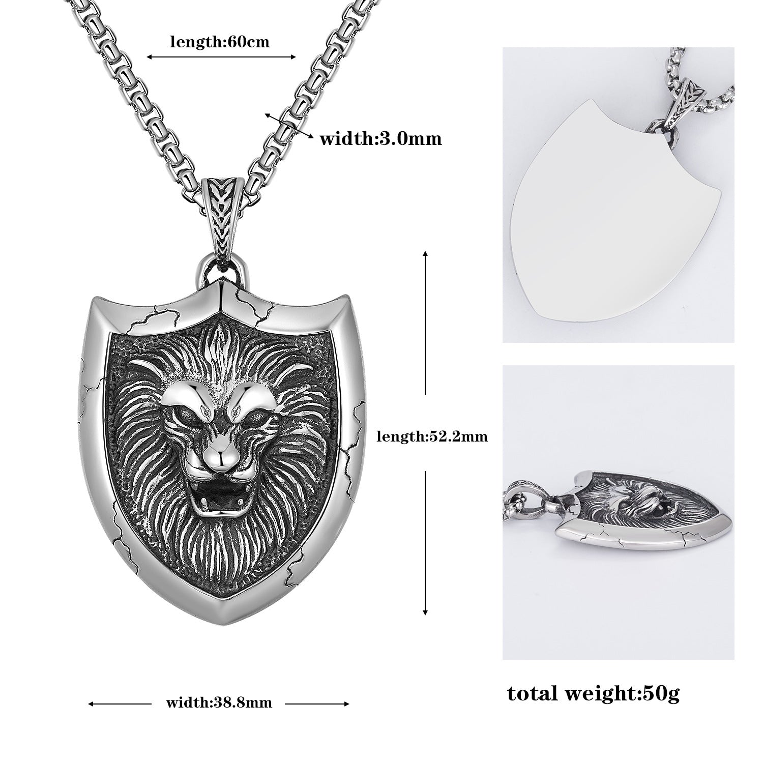 Steel Necklace - Vintage Unisex Lion Shield Pendant
