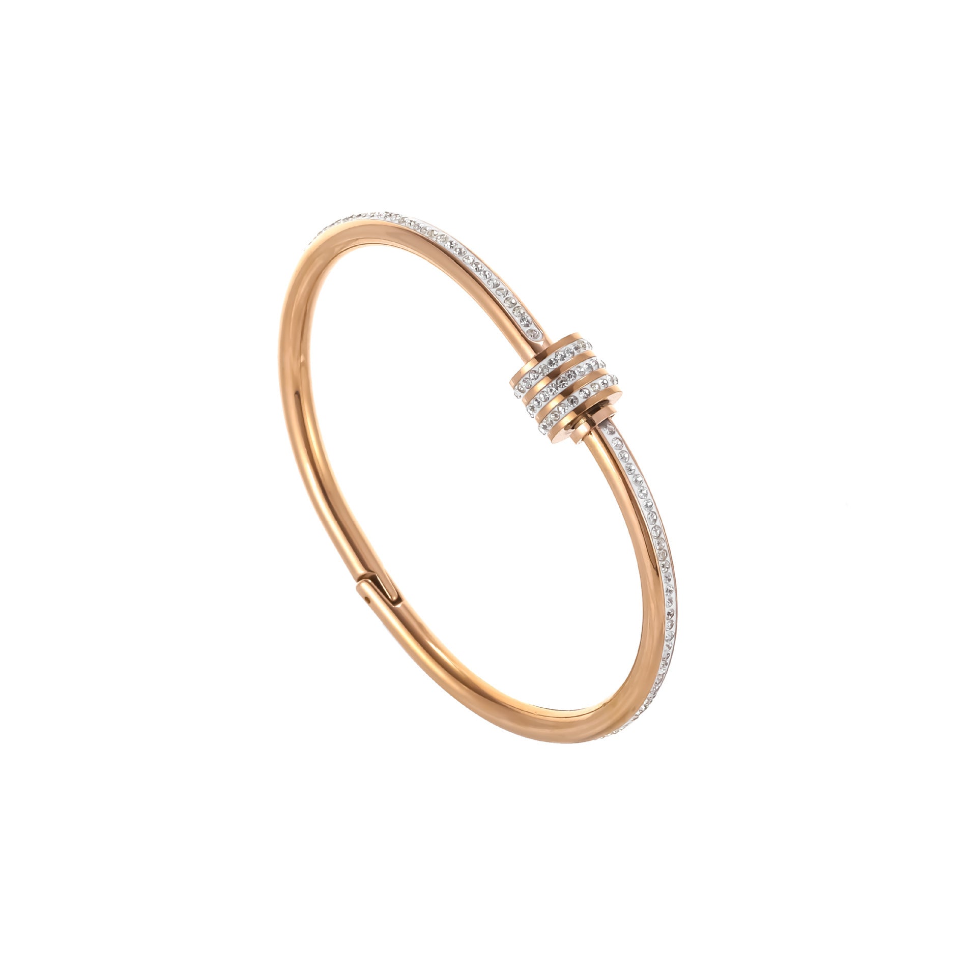 Exuding a refined minimalism, this open rose-gold bracelet adds a warm, sophisticated glow to any ensemble—from a crisp office look to an evening out. The durable steel construction provides lasting shine and resilience for daily wear, while the rose-gold-tone finish offers a versatile, flattering warmth that complements a wide range of skin tones and outfits. Its open design delivers a comfortable, adjustable fit without the fuss of traditional closures, making it as easy to gift as it is to wear. Designed for lovers of understated luxury, this piece elevates your personal style with a niche, high-end sensibility that remains effortlessly timeless.