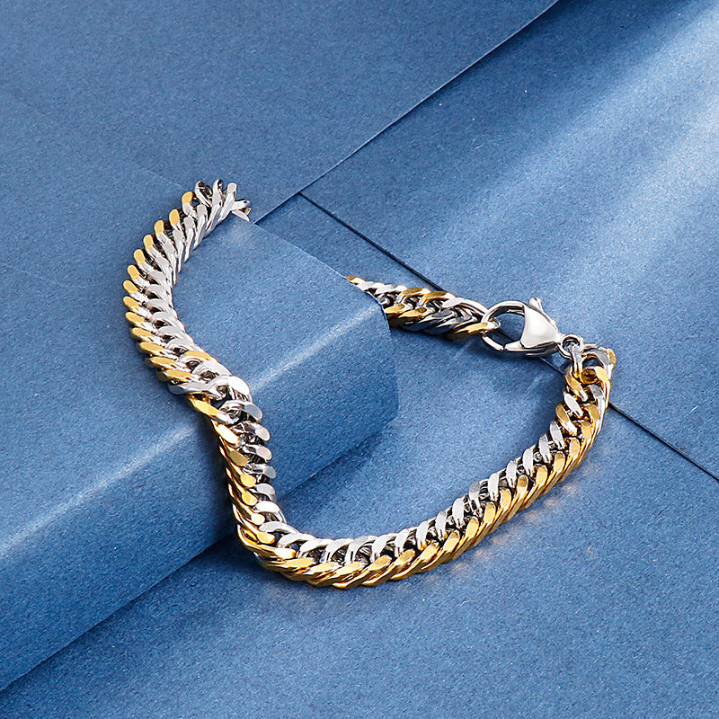 Elegant Metal Whip Chain Bracelet and Necklace Set for Men - Japan and South Korea Inspired Fashion