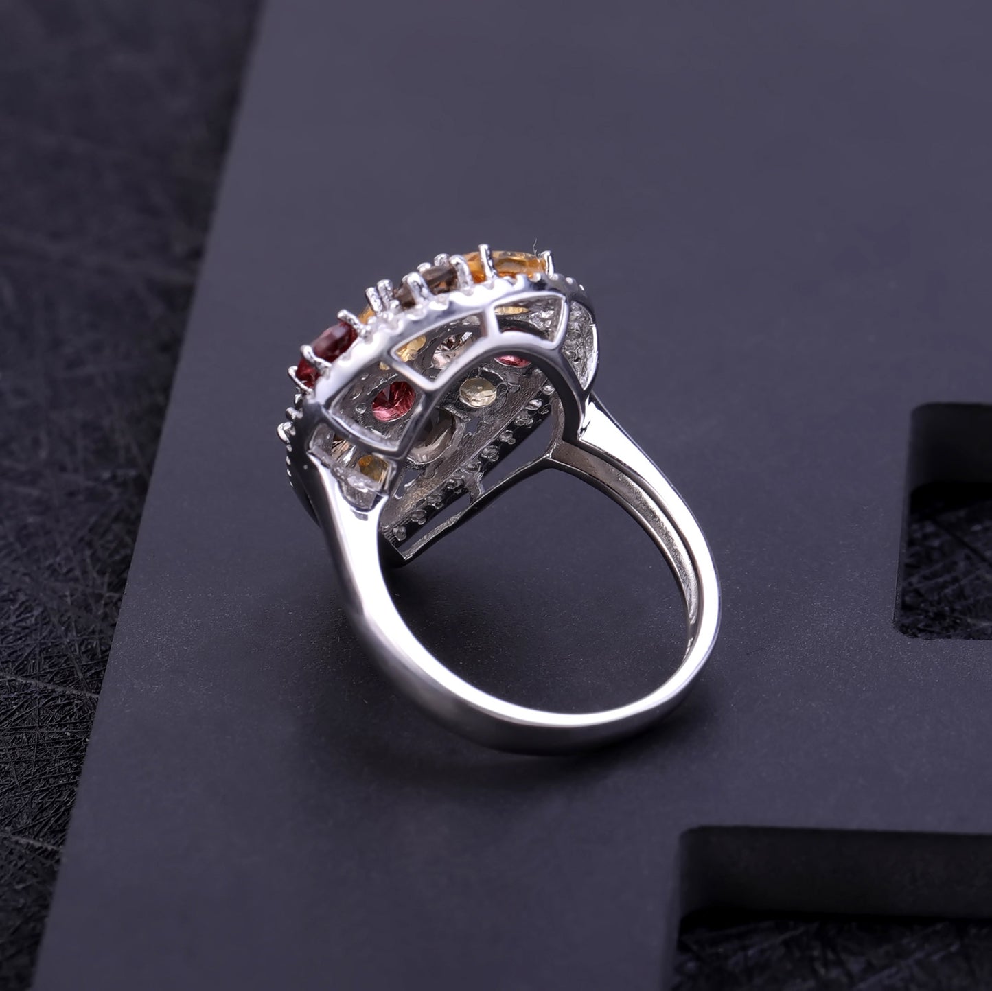 Colourful Mardi Gras Gemstone Luxury Pear Drop Sterling Silver Ring for Women