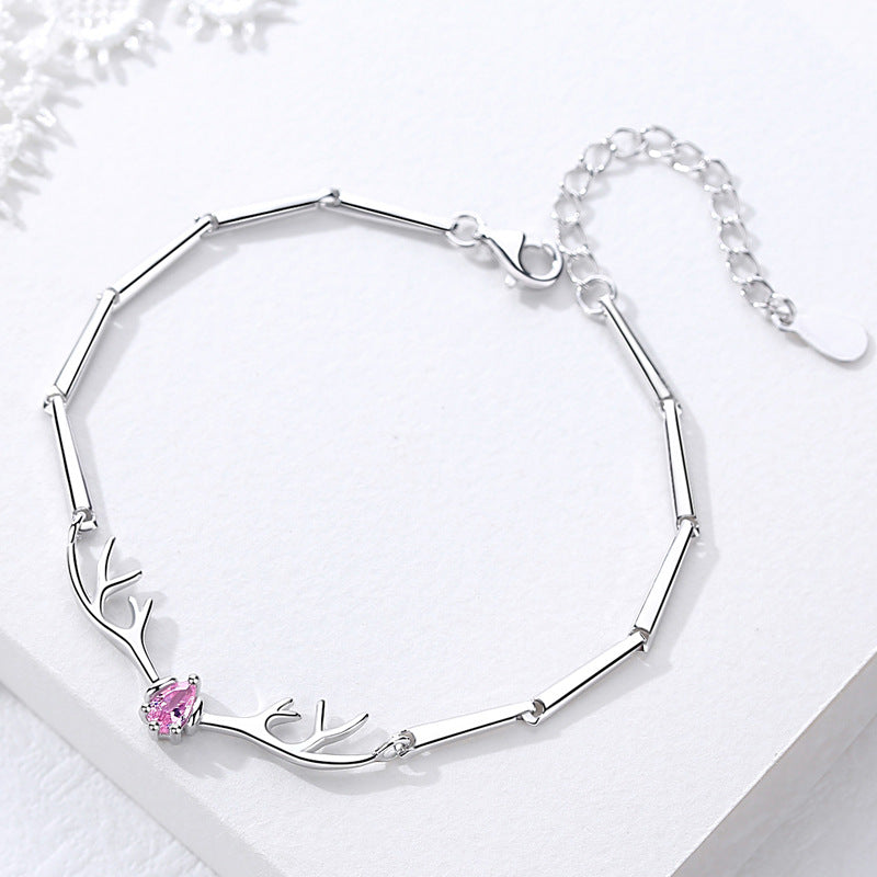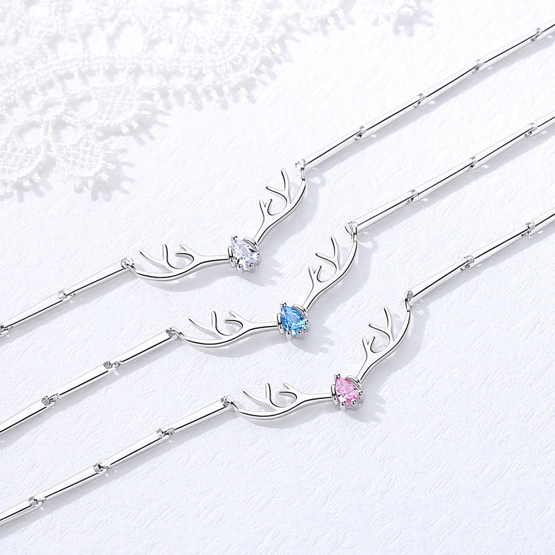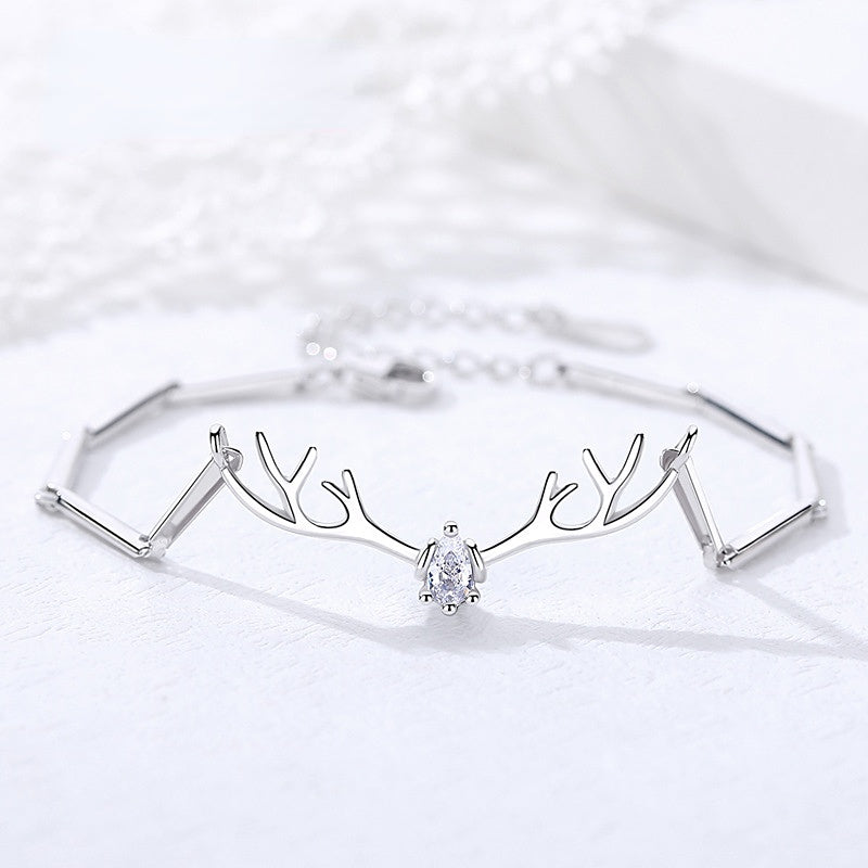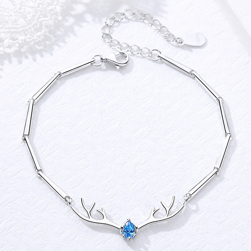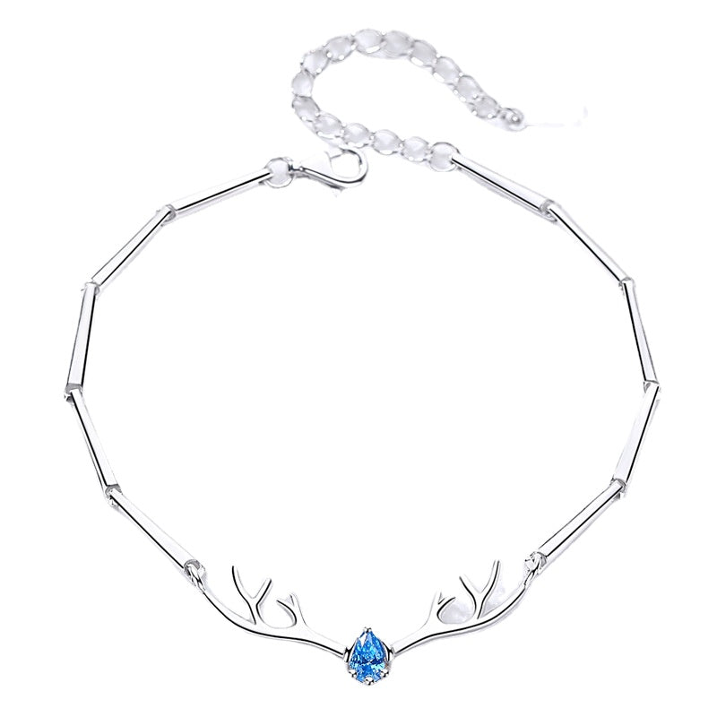 Accessorize with this stylish Elk Antler with Zircon Silver Bracelet for Women. Adorned with a sparkling water drop blue zircon, this fashion piece will make a stunning addition to your jewelry collection.