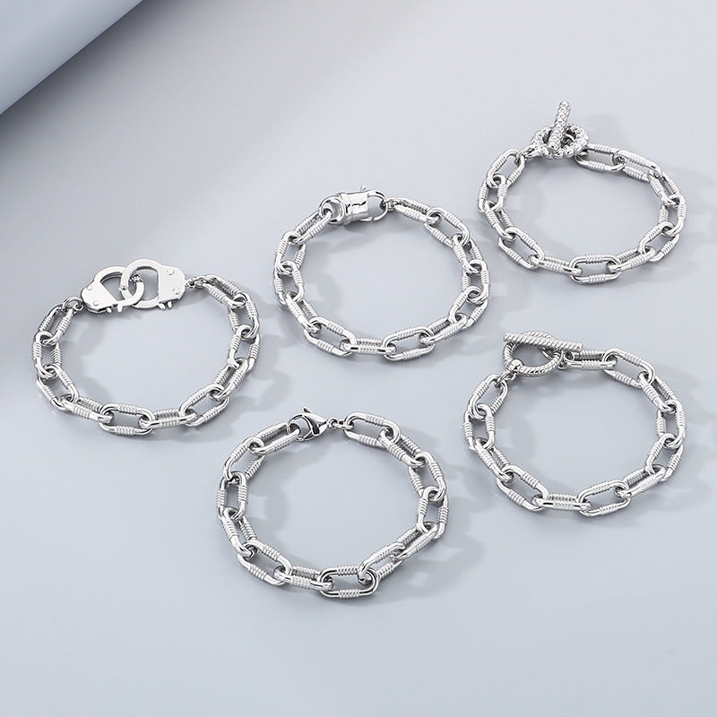 Mens Titanium Steel Bracelet Planderful Skull Buckle Bold