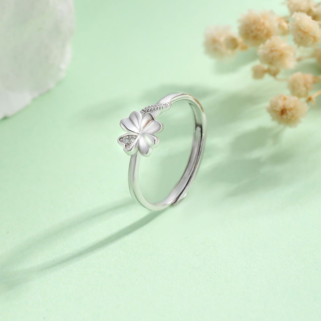 Designed to elevate daily looks with a touch of luck and understated elegance. The four-leaf clover motif provides a timeless charm that pairs well with both casual and dressier outfits. The adjustable opening ensures a secure, comfortable fit across finger sizes, making it suitable for stacking with other rings or wearing solo. Crafted in durable sterling silver, this ring is a thoughtful gift for a girlfriend or anyone who loves refined, everyday jewelry.