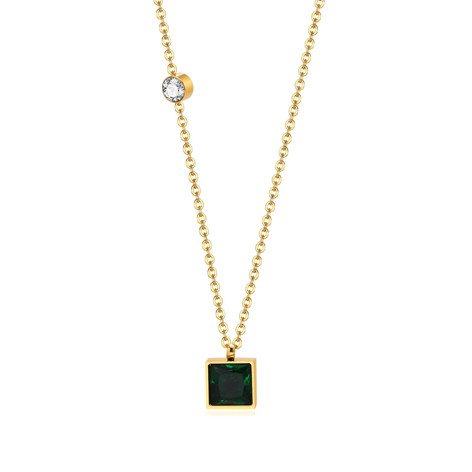 Discover the elegance of our Geometric Necklace, Stainless Steel Green Zircon Square Necklace, Gold Women, Foreign Trade Fashion Jewelry. This stunning piece combines modern design with timeless appeal, making it a perfect addition to any jewelry collection. Crafted from high-quality titanium steel, this necklace is not only durable but also lightweight, ensuring comfort for all-day wear.