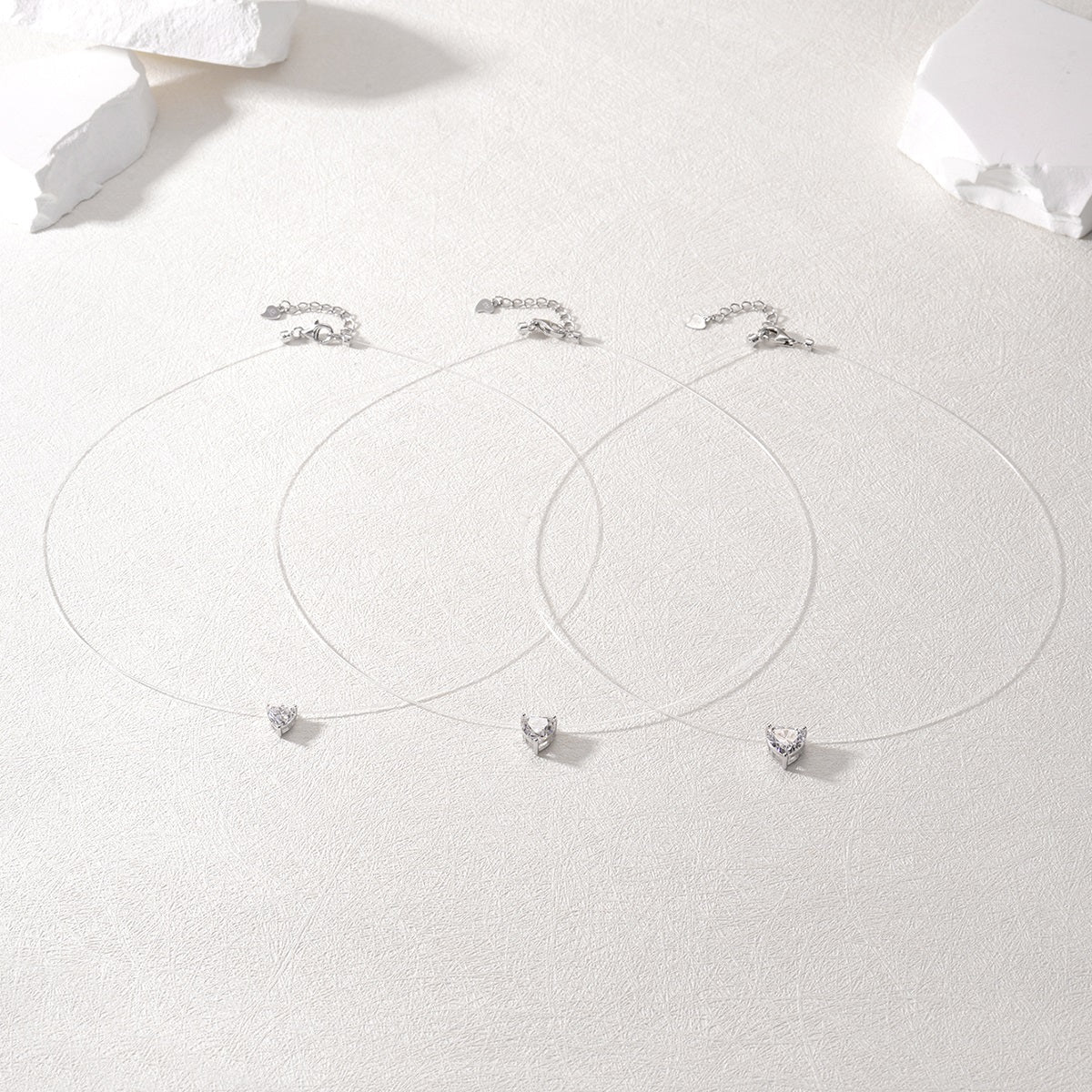Enjoy a flattering neckline that catches the light from every angle. The premium moissanite delivers impressive brilliance and clarity, while the sterling silver base ensures durability and a timeless shine. The invisible fishing-line construction provides a clean, minimalist profile that’s perfect for layering or wearing solo—ideal for both everyday outfits and special occasions.