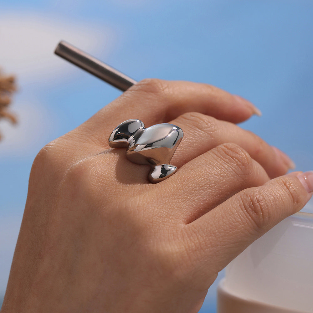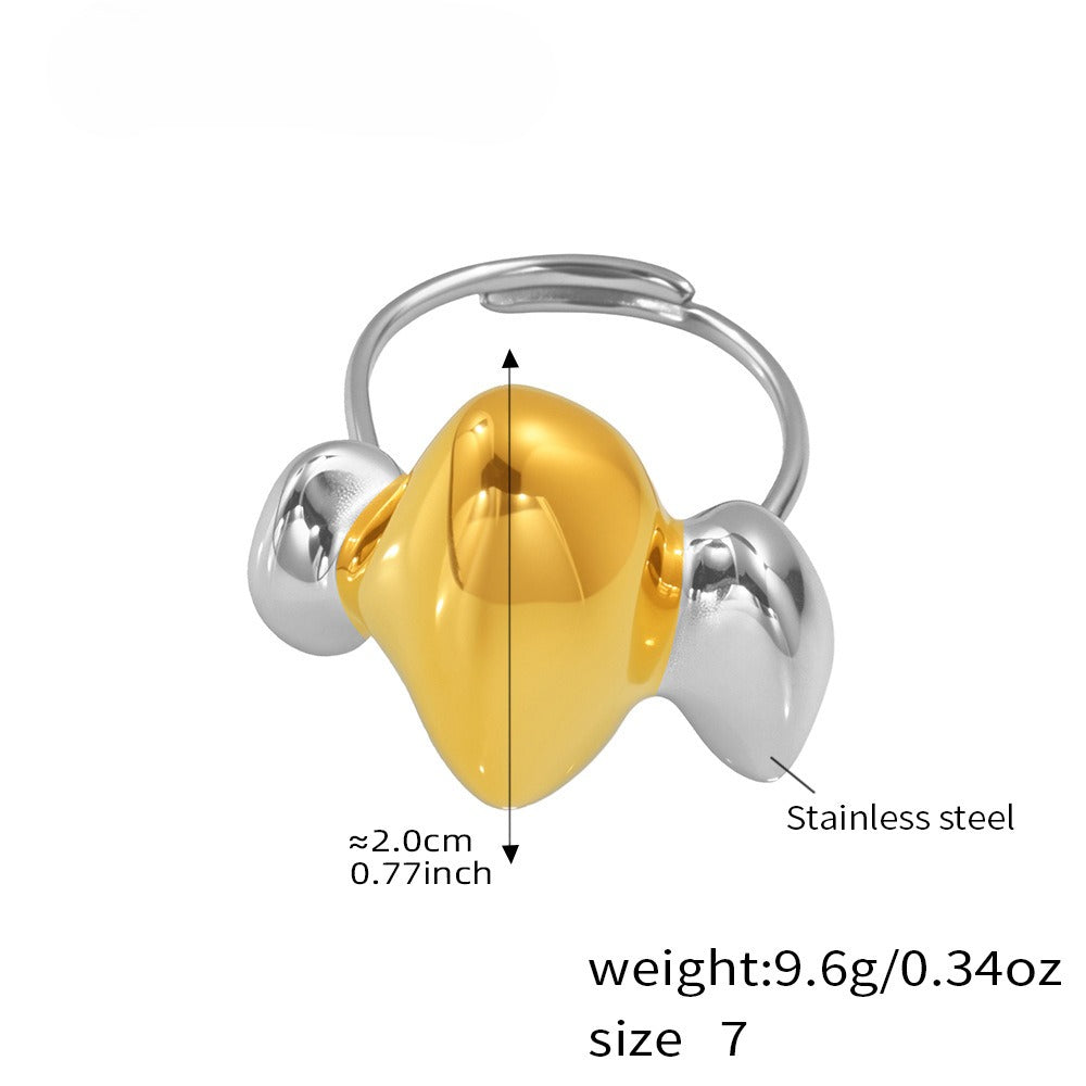 Planderful presents the Heavy Industry Casting Geometric Color Matching Ring, a bold open index finger ring finished in luxurious 18K gold electroplating over European and American stainless steel. This geometric, color-matching design blends rugged industrial vibes with refined shine for a contemporary statement piece.