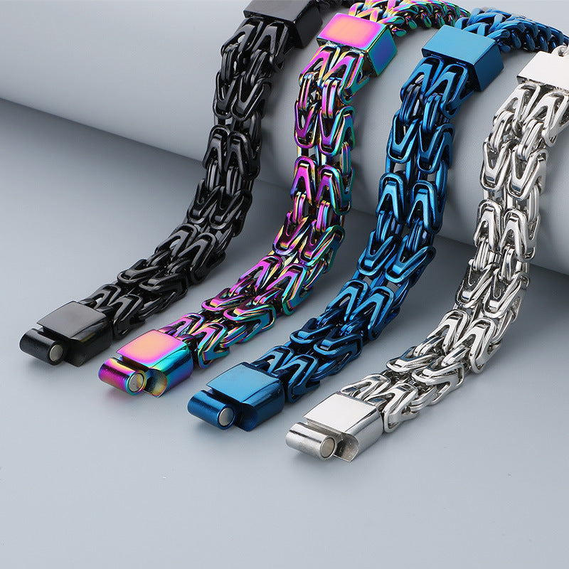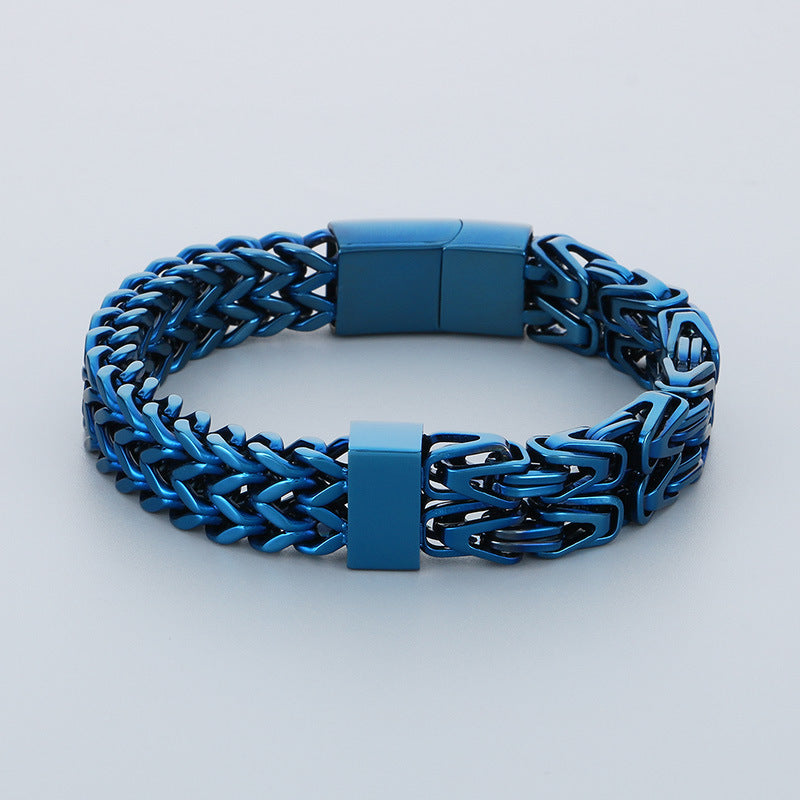 Featuring a simple yet domineering front and back chain splicing, this imperial chain bracelet exudes an air of confidence and sophistication. Its intricate detailing and urban aesthetic make it a perfect accessory for both casual outings and special events.