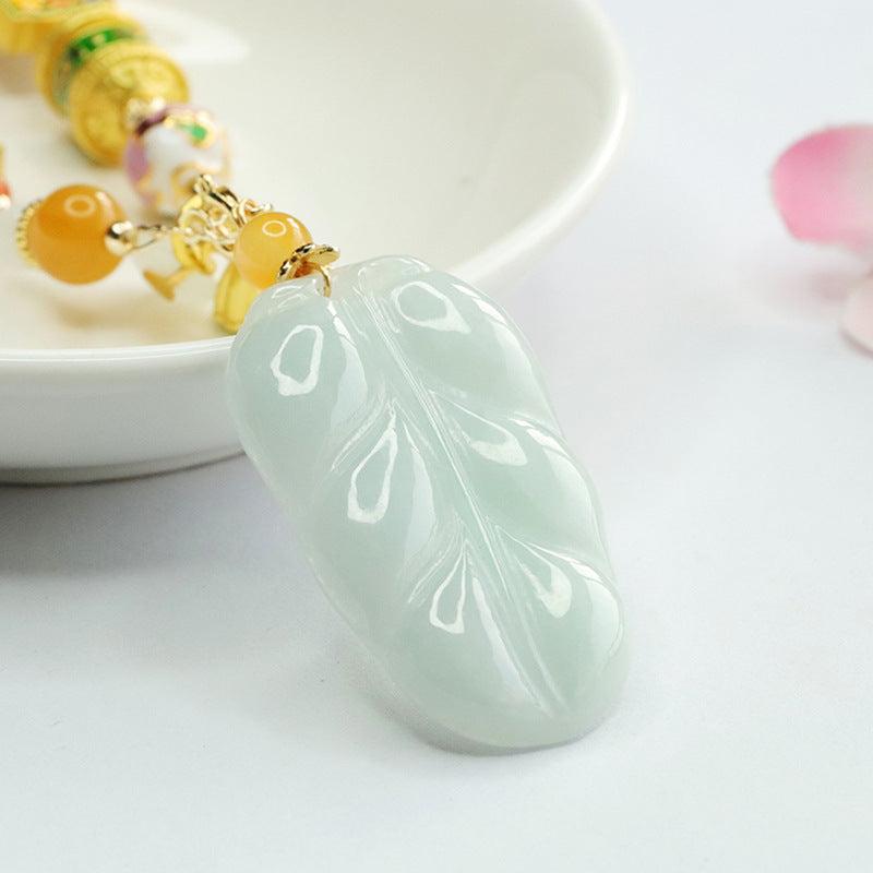 Myanmar Jade Leaf Necklace with Sterling Silver Chain