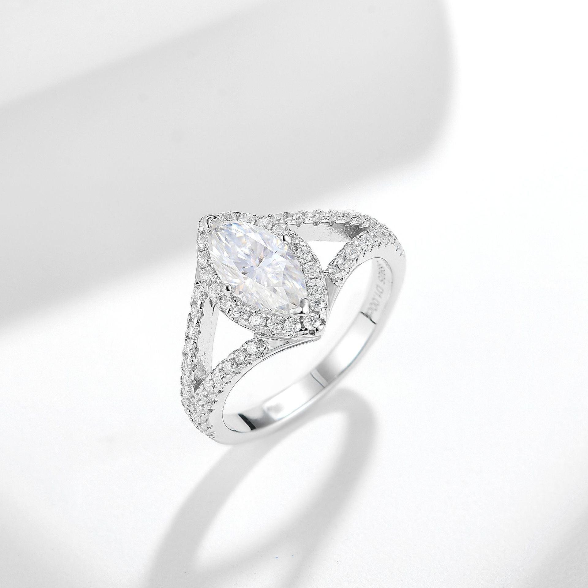 Planderful Moissanite Engagement Ring Ladies 5x10mm Marquise Stone S925 Silver Split Shank D VVS 3EX 1.48ct