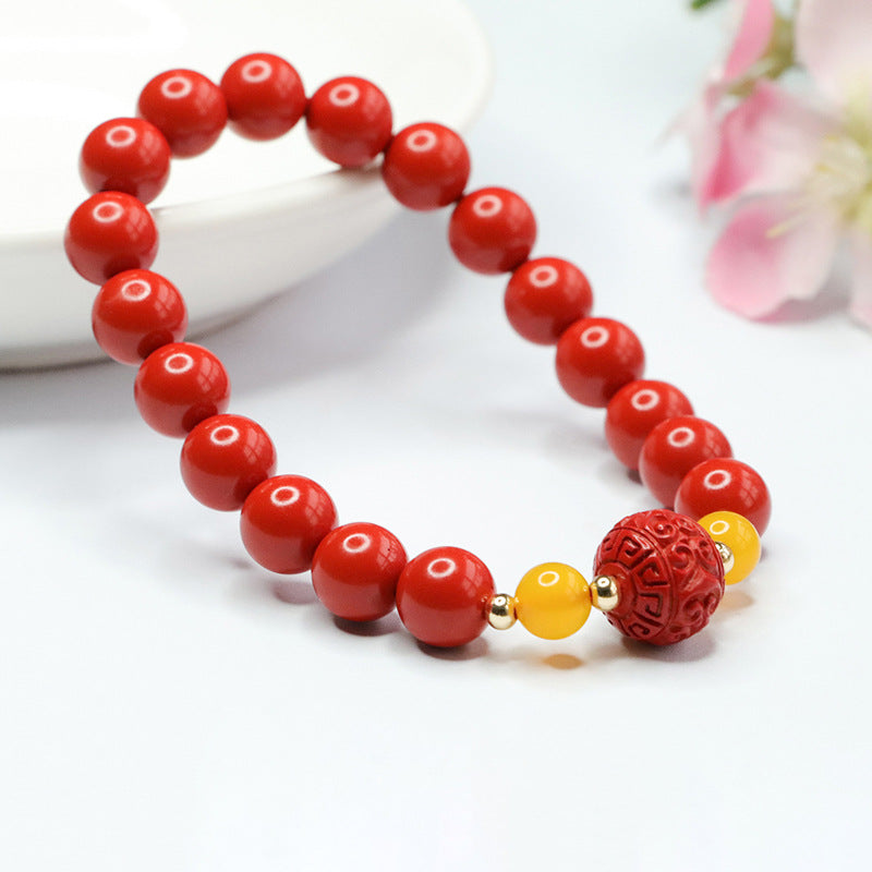 Indulge in the allure of tradition and modernity with our Cinnabar Auspicious Cloudscape Pattern Bead Bracelet, a symbol of timeless beauty and auspicious blessings.