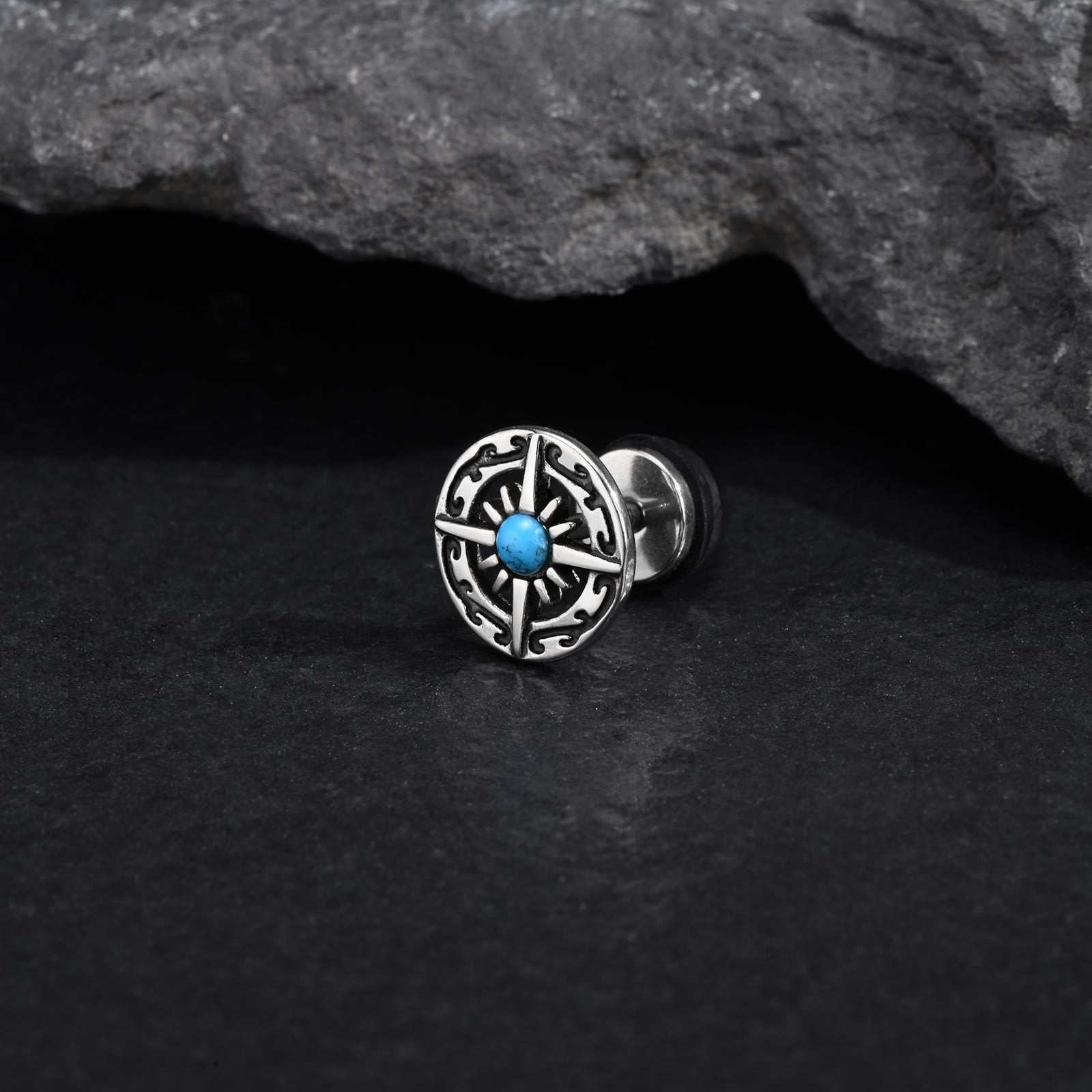 Planderful Turquoise Compass Stud Earrings Stainless For Men
