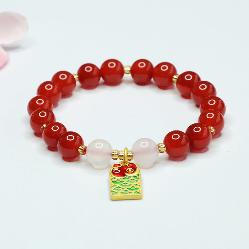Enhance your style with the exquisite Natural Pigeon Blood Red Agate Bracelet White Chalcedony Bracelet from our Fortune's Favor Collection.