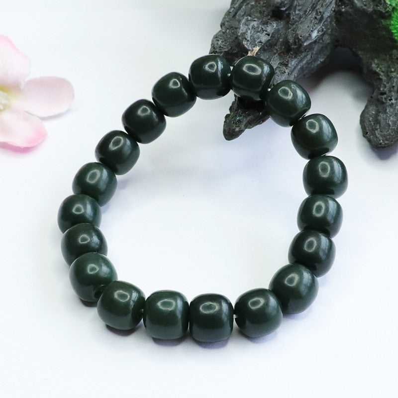 Elevate your ensemble with the Natural Hetian Jade Ta Qingtongzhu Handstring Lutong Bracelet and make a statement wherever you go.