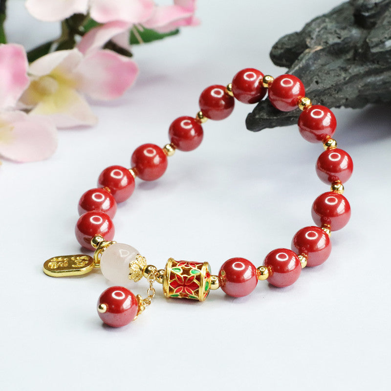 Fortune's Favor Cinnabar Bracelet with Sterling Silver Drum Design