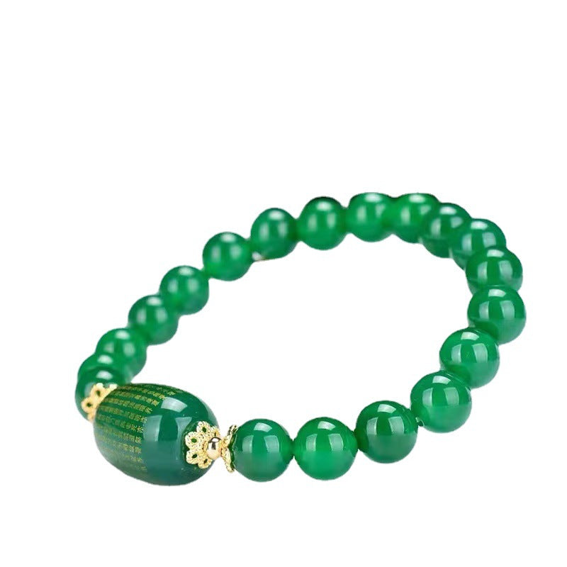 Heart Sutra Sterling Silver Bracelet with Genuine Green Chalcedony