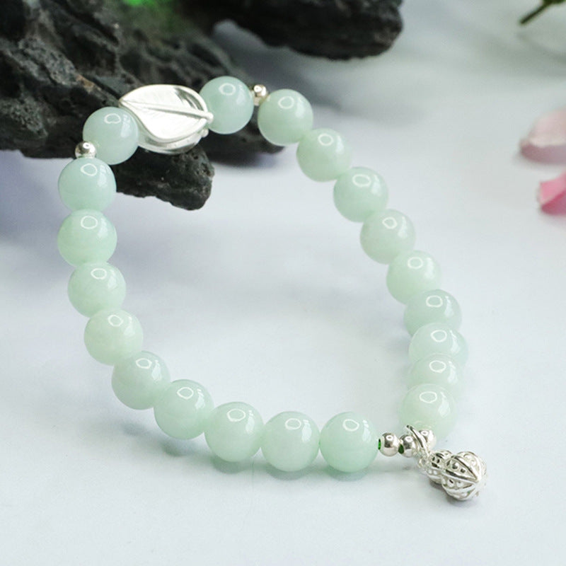 Fortune's Favor Sterling Silver Jade Bracelet with Peanut Leaf Design