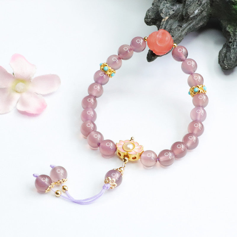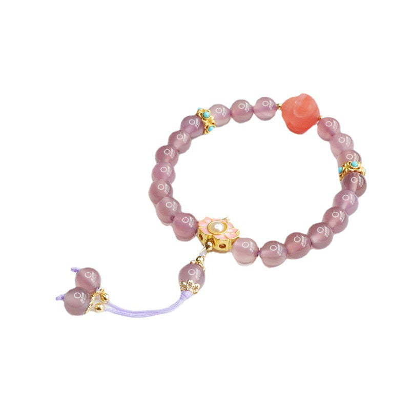 Purple Chalcedony Buddha Head Bracelet with Lotus Tassel