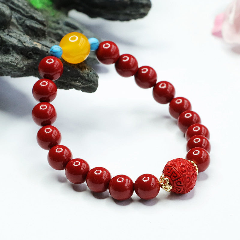 Auspicious Cloudscape Cinnabar and Agate Bracelet