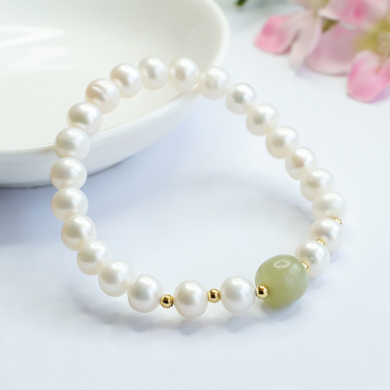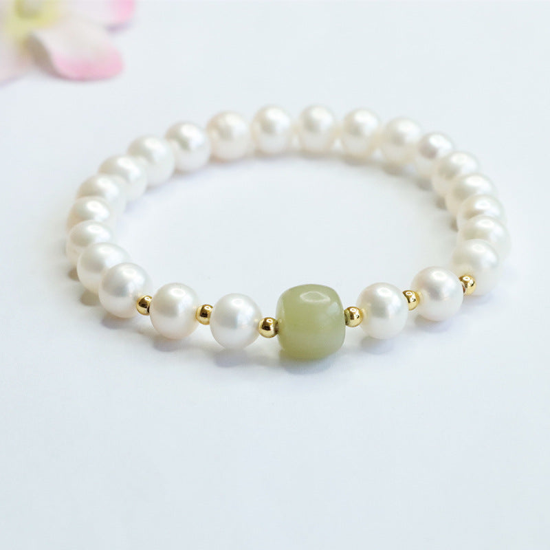 Natural Hetian Jade Hand String Bucket Pearl Freshwater Pearl Bracelet