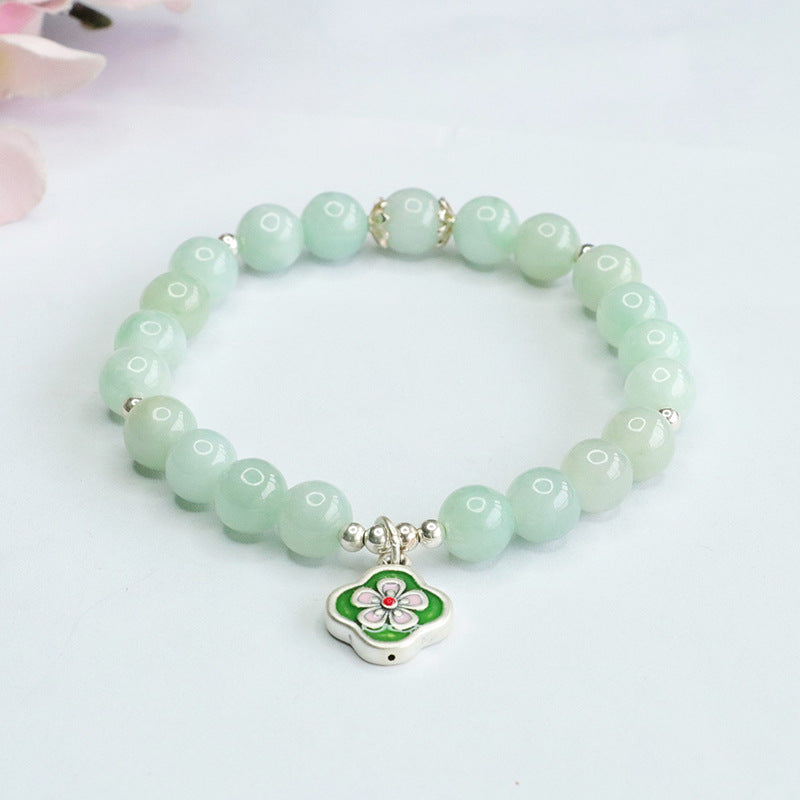 Jade Bracelet with Sterling Silver Four Leaf Flower Detail