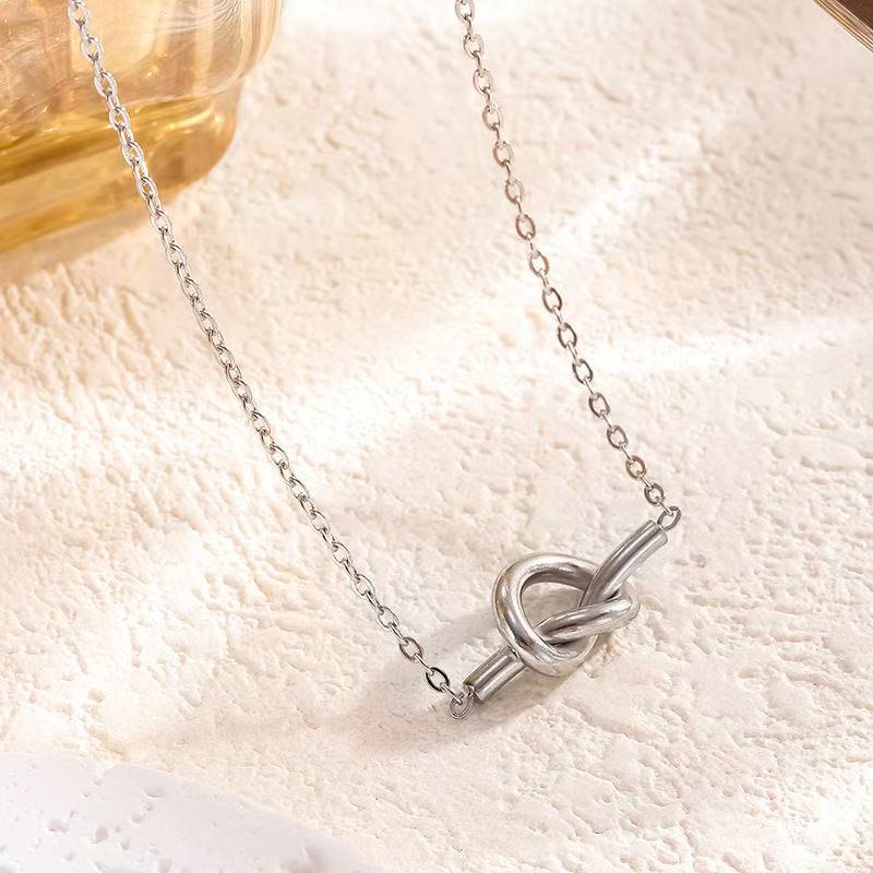 Planderful Jewelry Knot Love Titanium Steel Necklace For Women Exquisite Collarbone Chain Gold Tone