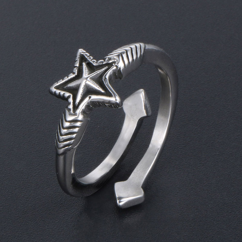 Introducing the exquisite Korean version open five-pointed star ring, a stunning piece that beautifully blends contemporary design with timeless appeal. This couple's ring is crafted for both men and women, making it a perfect accessory for your index finger or a meaningful gift for your loved one.