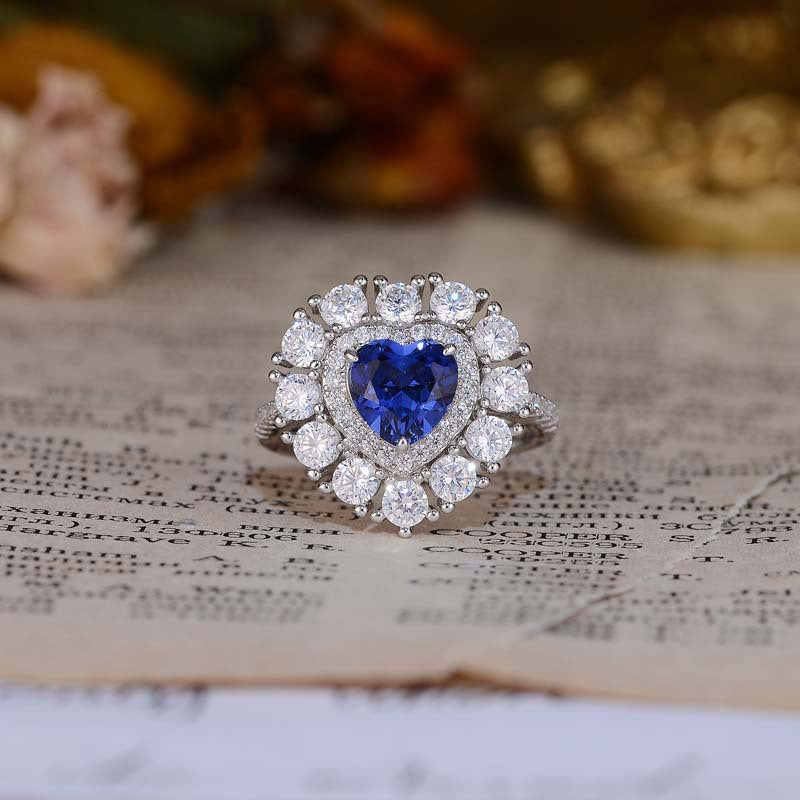 Luxury Halo Heart Shape Lab Created Sapphires Ring