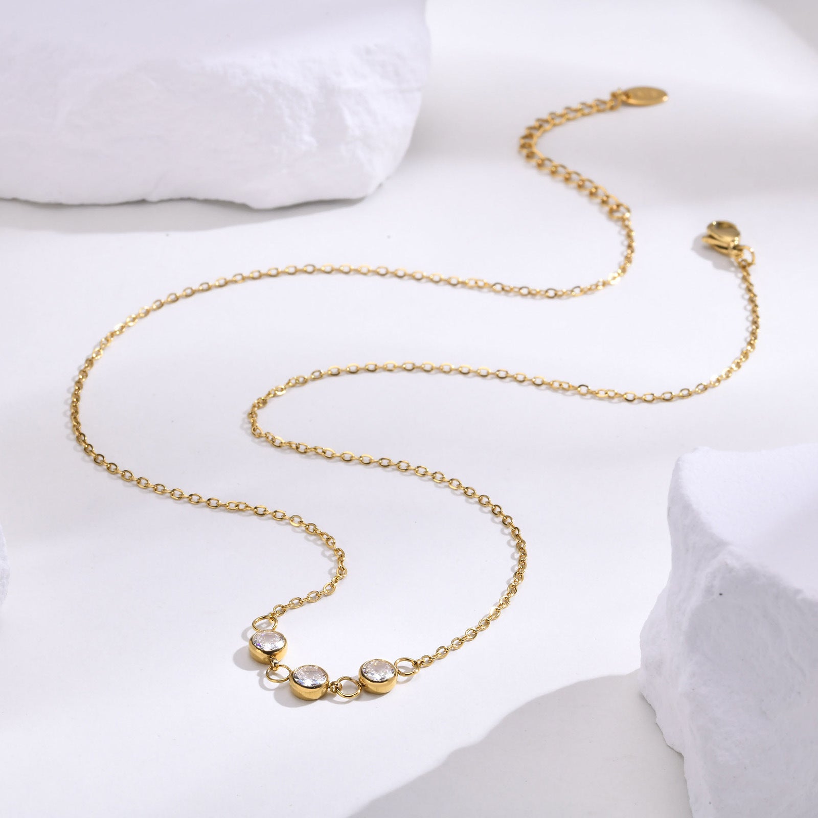 Discover the elegance of our Ladies Fine Necklace, Stainless Steel White Zircon Necklace Gold, Jewelry Wholesale. This stunning necklace is crafted from high-quality stainless steel, ensuring durability and a lustrous finish that will not tarnish over time. Adorned with shimmering white zircon stones, this piece adds a touch of sophistication and glamour to any outfit, making it the perfect accessory for both everyday wear and special occasions.
