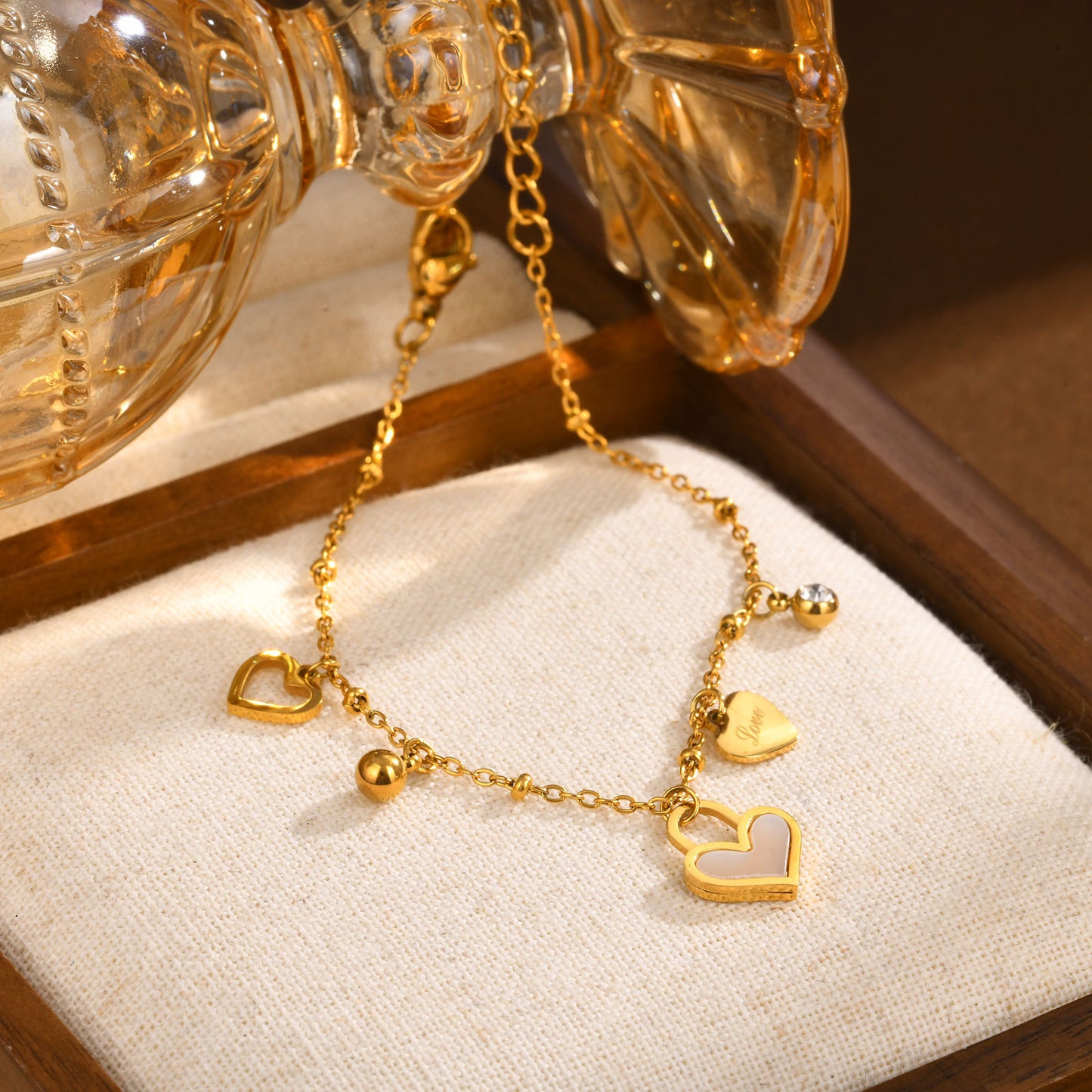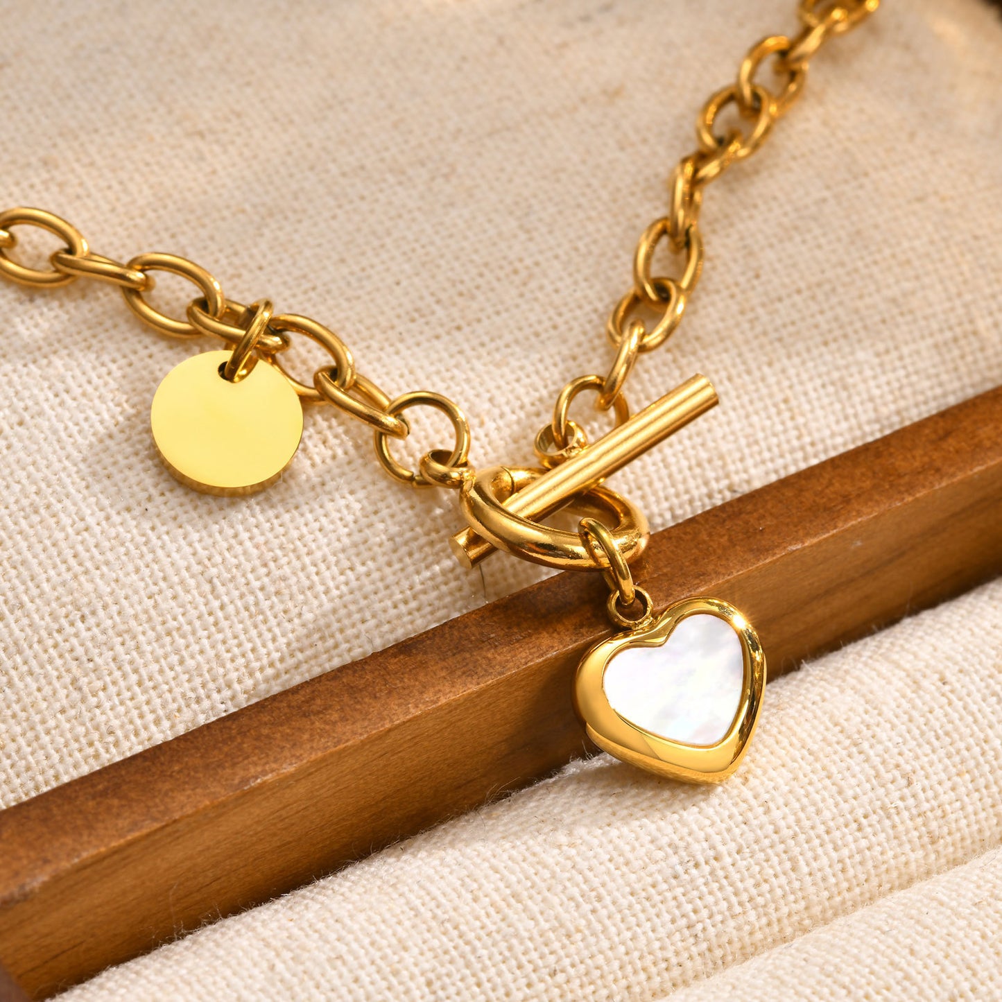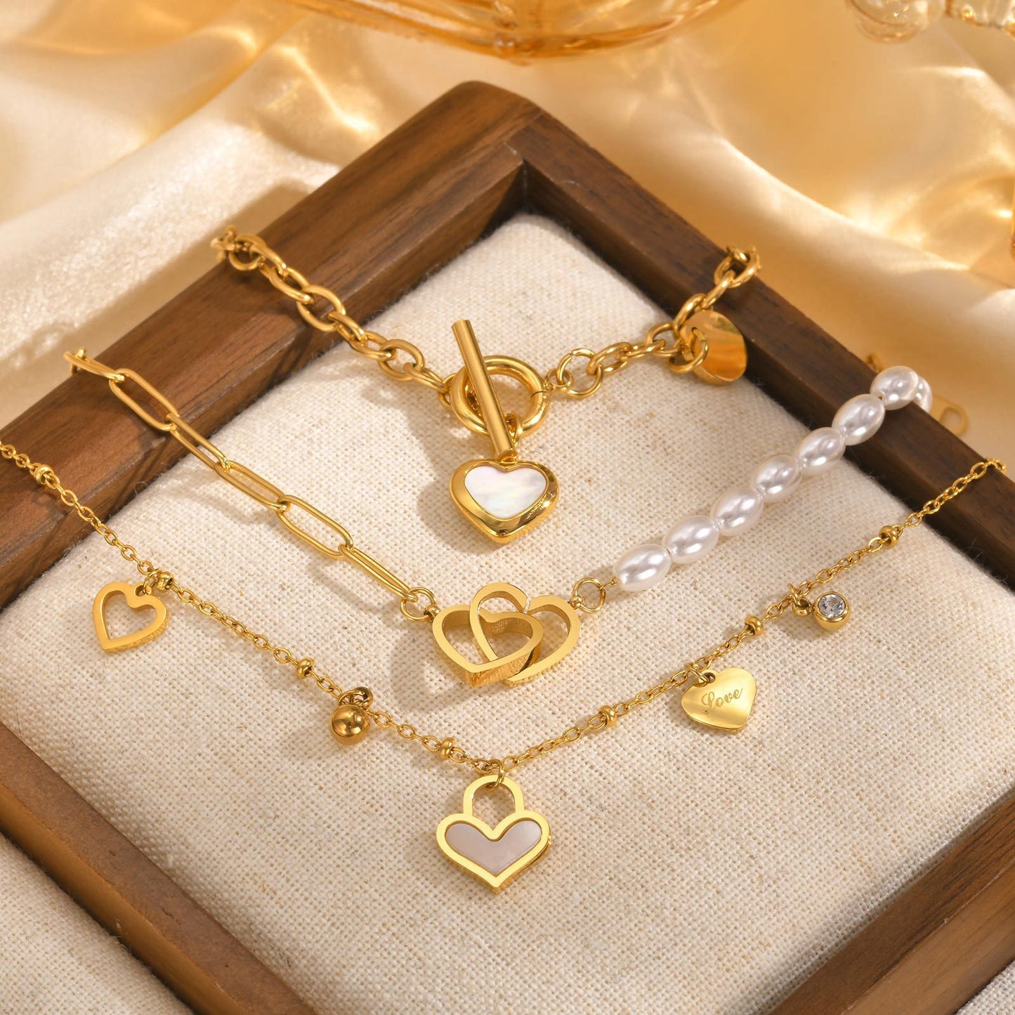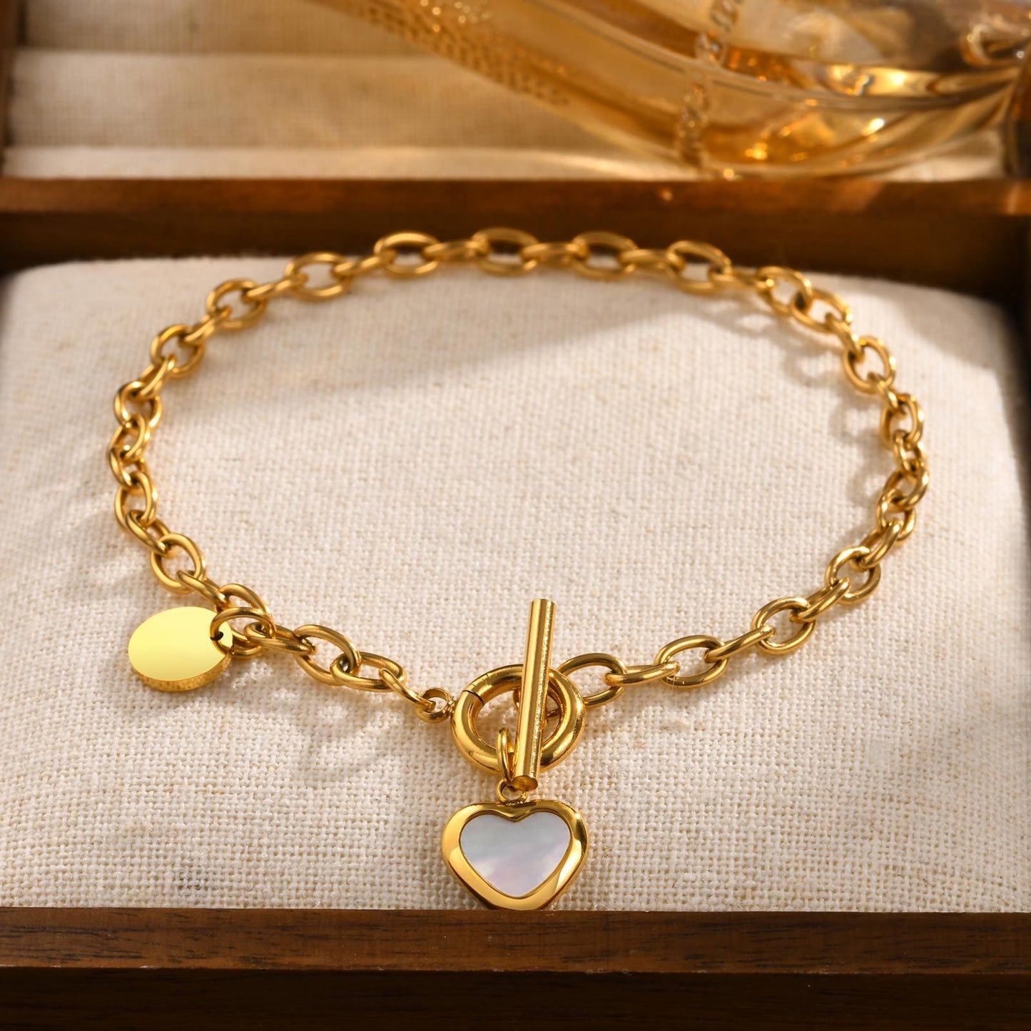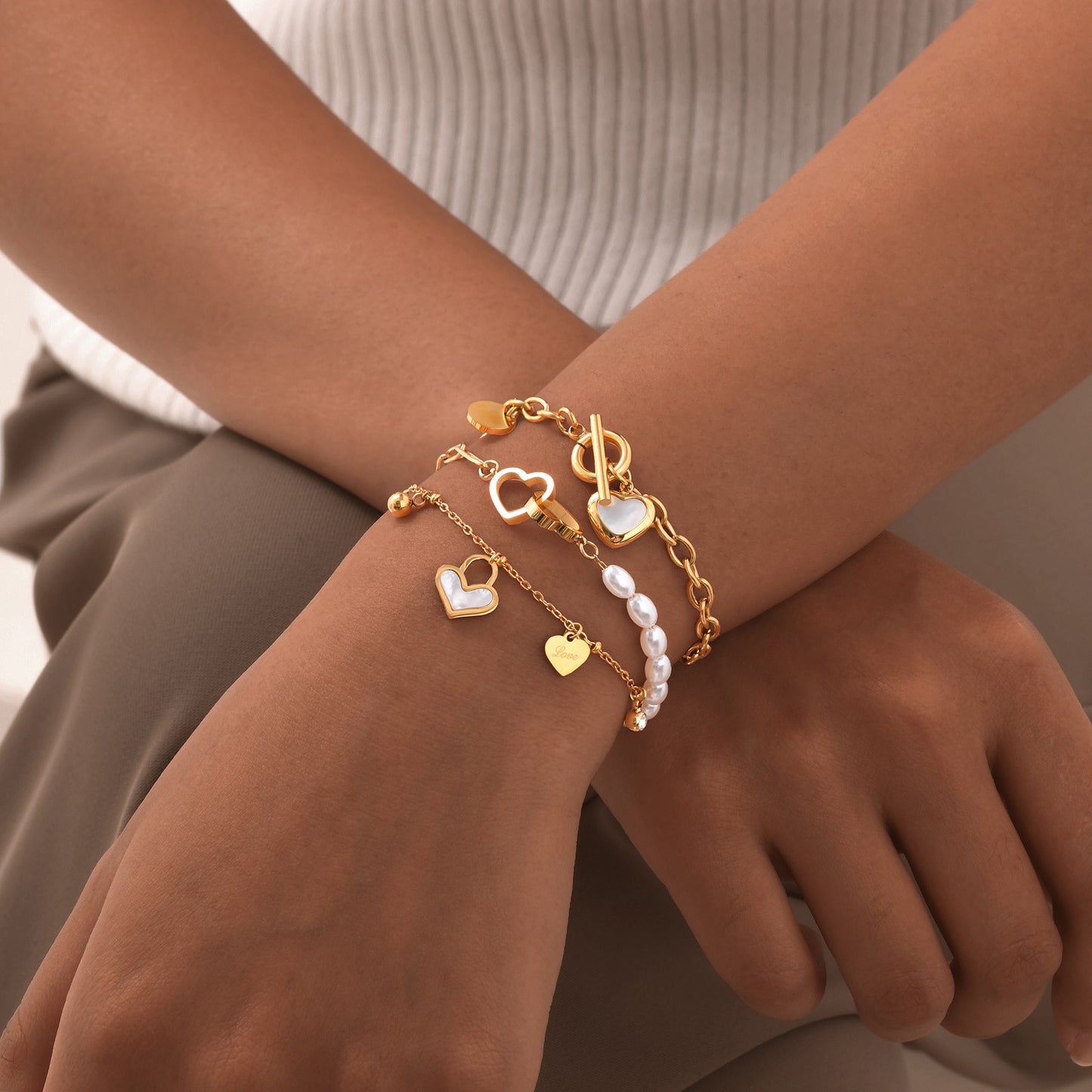 Indulge in the luxury and charm of the Love Heart Accessories Imitation Pearl OT Buckle Shell Ladies Gold Bracelet and let your style shine with every wear!