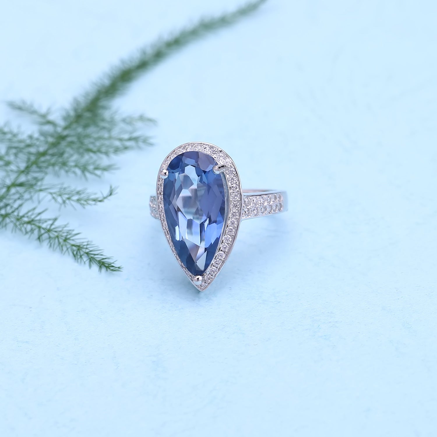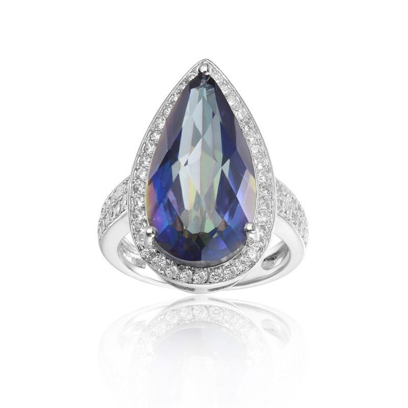 Colourful Crystal Soleste Halo Pear Drop Silver Ring for Women