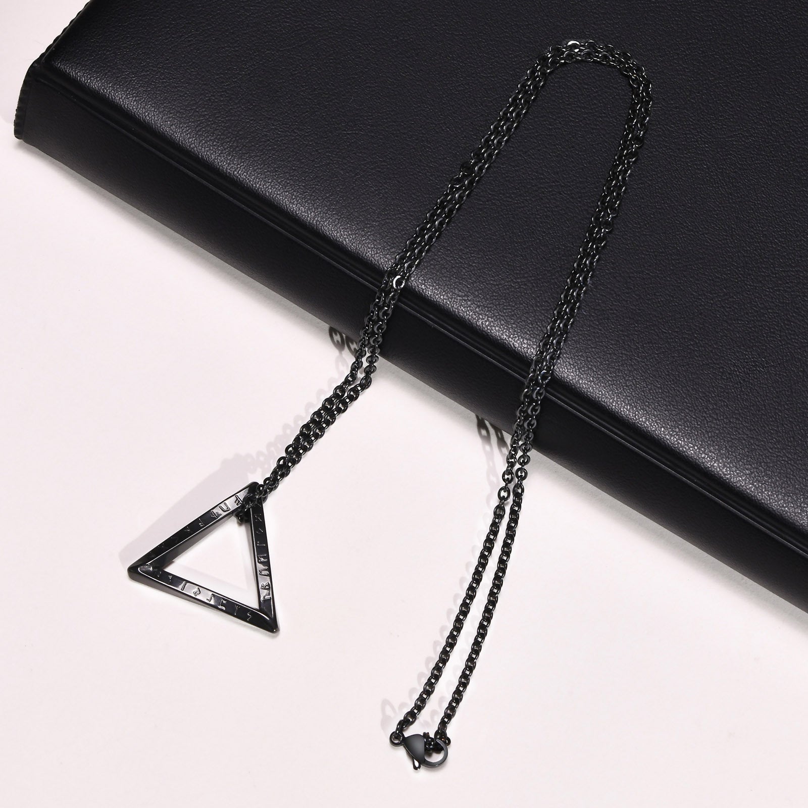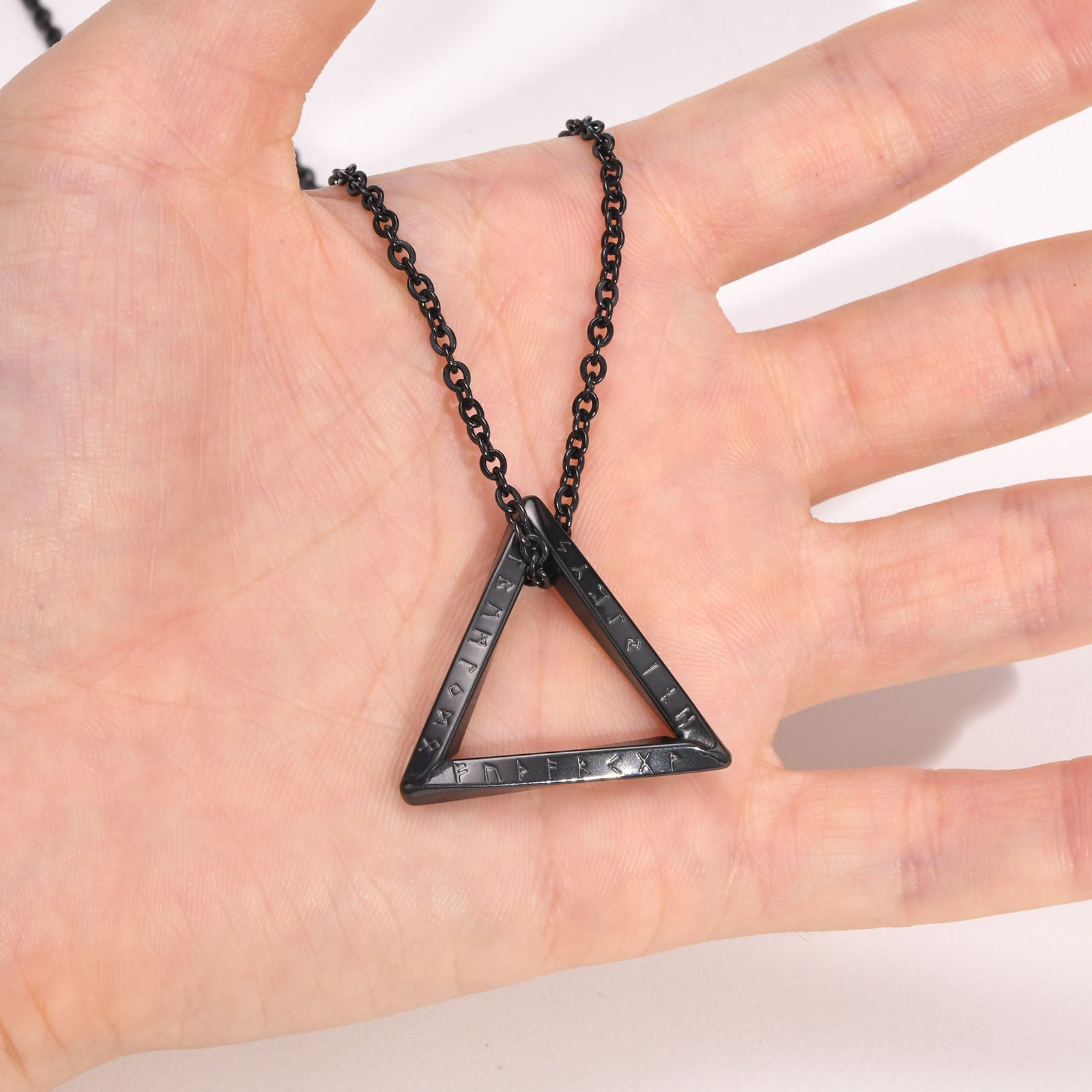 Introducing the Men's Stainless Steel Pendant Necklace, Viking Luhn Triangle Geometric Steel, Black for men, a striking piece that combines modern aesthetics with timeless Viking symbolism. Crafted from durable titanium steel, this necklace is not just a fashion statement but a testament to strength and resilience. Its unique triangle geometric design reflects a sophisticated style, making it an ideal accessory for any occasion.