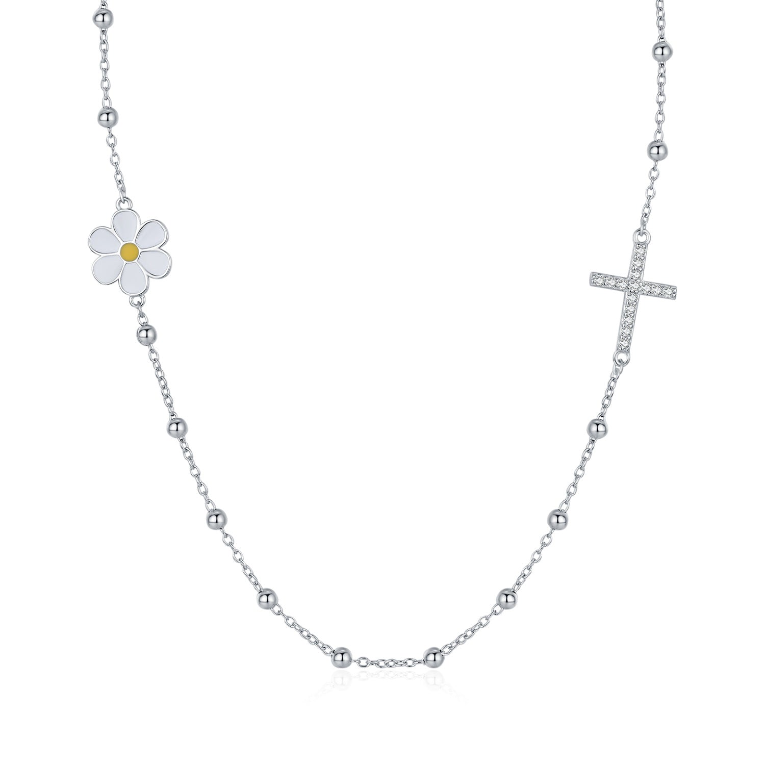 s925 Silver Mori Sweet and Elegant Full Zircon Cross Daisy Bean Choker Short Necklace by Planderful delivers a stunning touch of elegance for any occasion. This exquisite piece is perfect for elevating your everyday style or making a statement at special events.