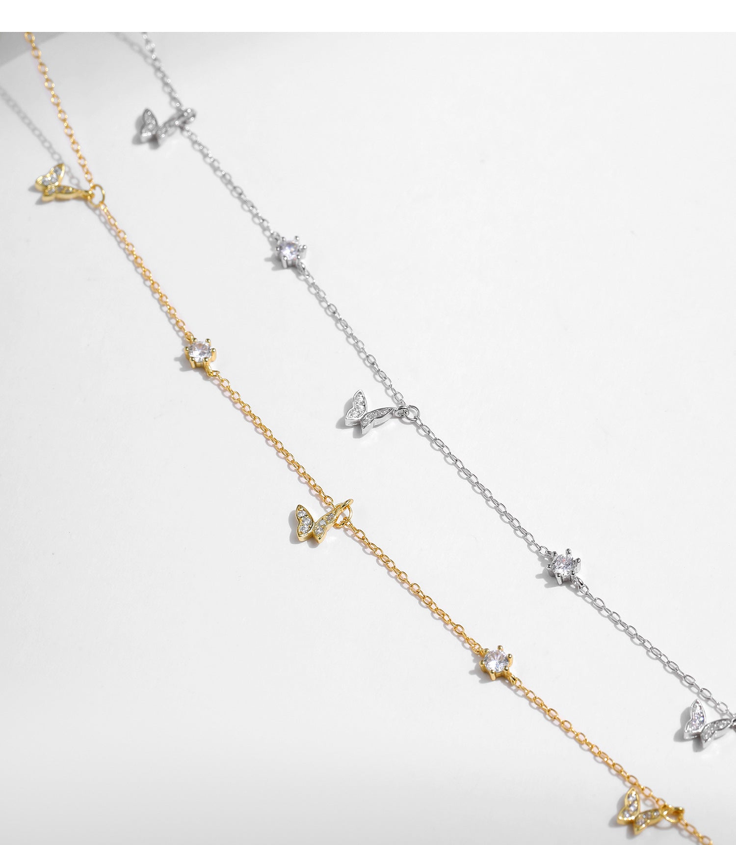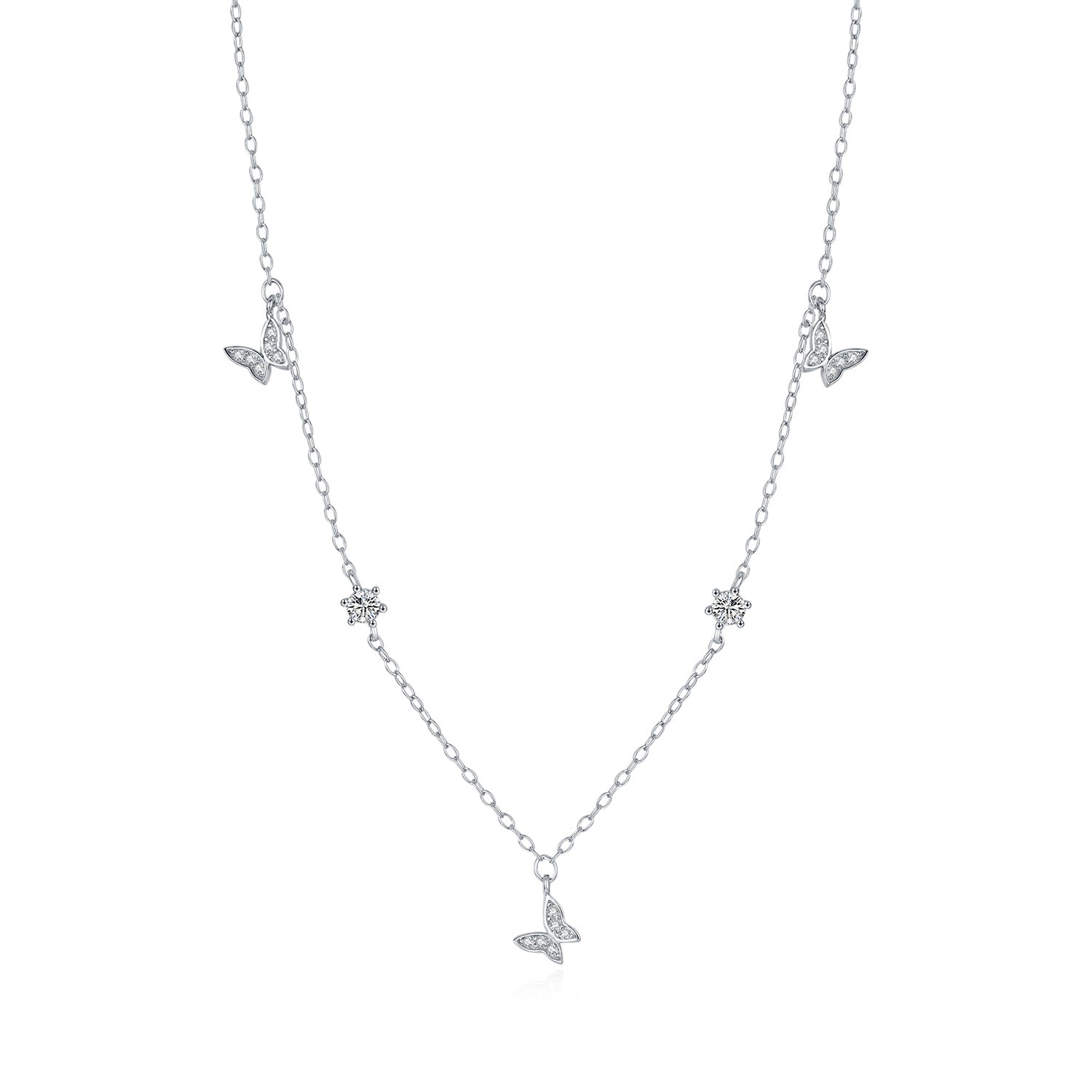 Planderful Everyday Genie S925 Sterling Silver Butterfly Dance Necklace – Cute Shiny Full Zircon Collarbone Chain