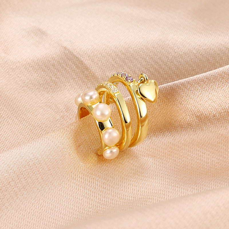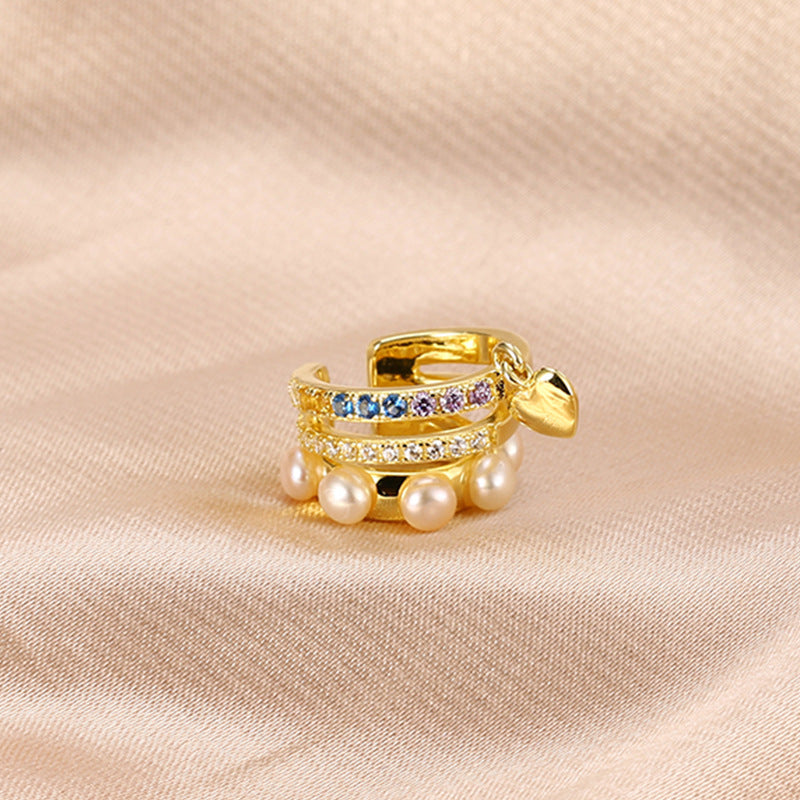 Multi-layer Freshwater Pearl with Colourful Zircon Earbone Clip Silver Earrings for Women