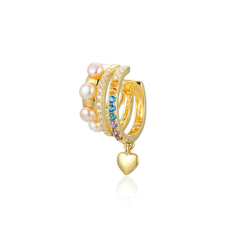 Introducing a perfect blend of classic elegance and fresh femininity: Multi-layer Freshwater Pearl with Colourful Zircon Earbone Clip Silver Earrings for Women. Crafted with multi-layered C-shape design for a touch of sophistication, this earrings is encrusted with beautiful freshwater pearls and colorful zircons, held together by earbone clips. Simple yet luxurious, this earrings is ideal for adding a hint of glamour to any occasion.