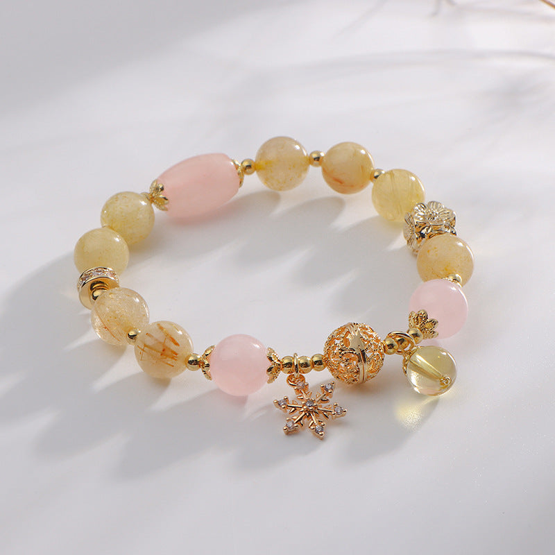 Blonde Crystal Charm Bracelet with Pink and Yellow Accents